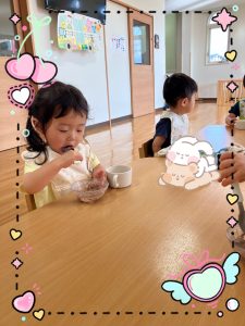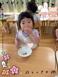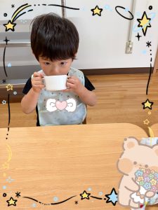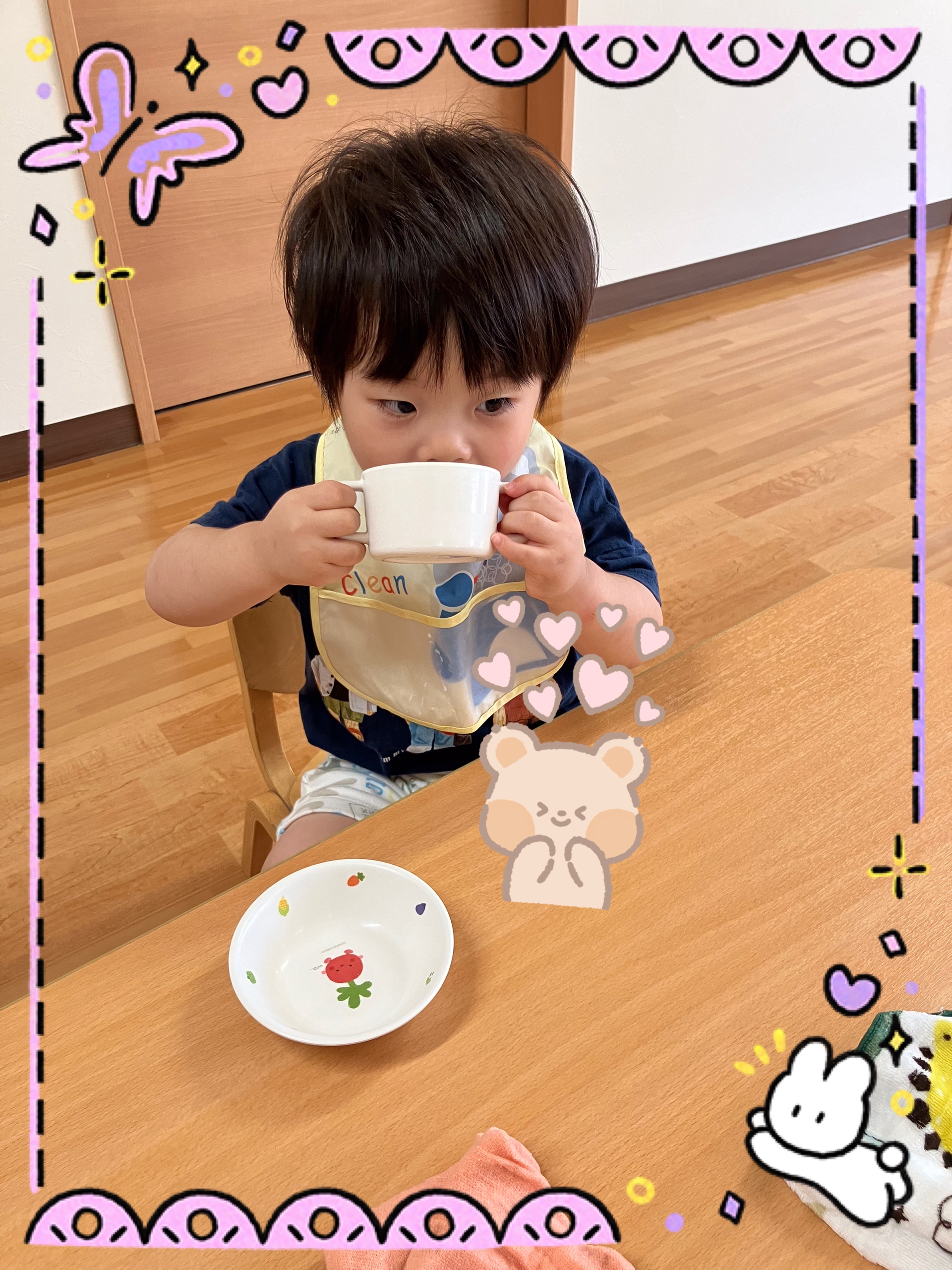 ぺんぎん組⭐︎おやつタイム⭐︎ 2025年10月01日 今回は、おやつの時間の様子を紹介します! いつもおやつの時間を楽しみにしている子どもたち♪おやつが運ばれてくると「きたー!」と大喜び♪「美味しいね!」と微笑む姿に癒されます!「お茶ください!」おかわりしたいことも伝えてくれます♪