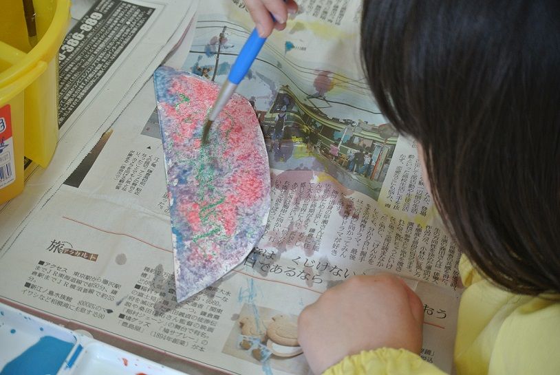 そこに絵具で色を塗ると・・・素敵な色合いになります。