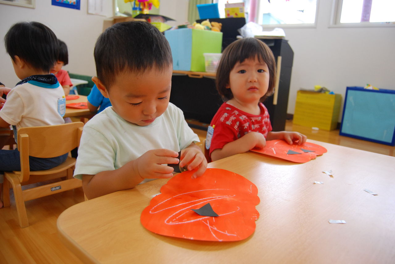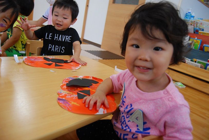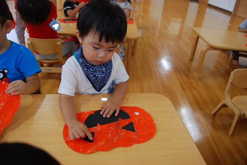 ぺんぎん組です♪ 2016年10月04日 こんにちはぺんぎん組です今回は製作の様子をお伝えしたいと思いますクレヨンと絵の具を使いはじき絵をしました まずはクレヨンでカキカキ~ 次はオレンジの絵の具をはけで塗ります よいしょっ わあ~すごい 真剣です 上手にはじけました 最後は目・口・鼻を貼ります 難しいな~ ペタンッ できたよ~ みてみて~ 上手にかぼちゃが出来ました おまけ みてみて~はっぱとったよ 大好きなかけっこ 毎日元気いっぱいのぺんぎん組さんです