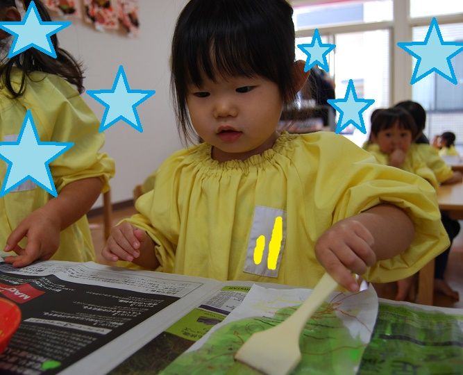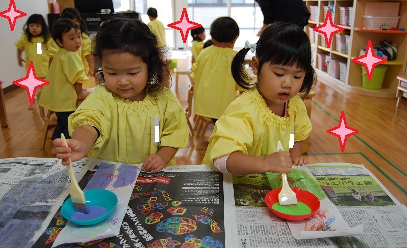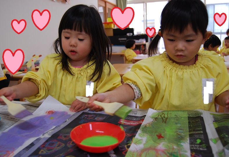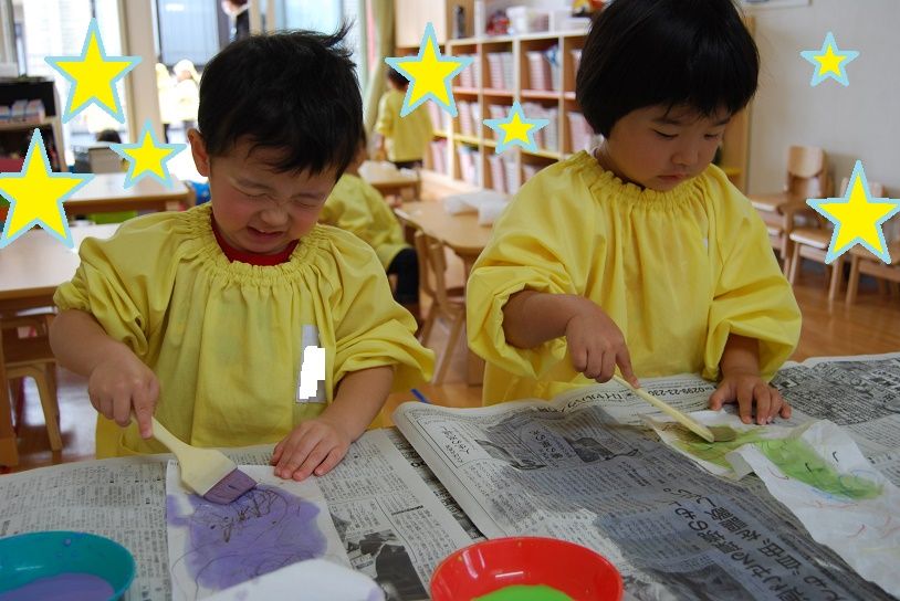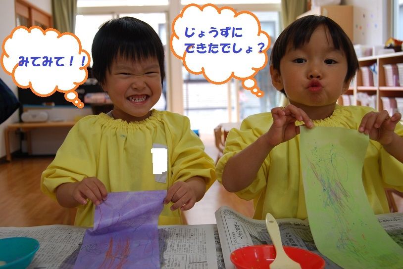 和紙にじわじわと染みていく絵の具を楽しんでいました![]()