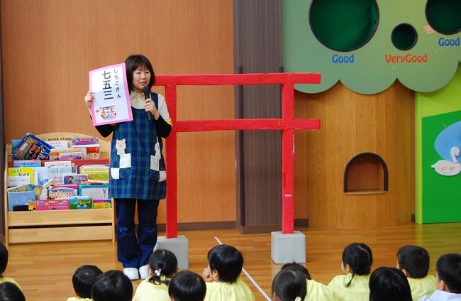 遊戯室には、ひよこ組の先生たちの手作りの鳥居が![]()