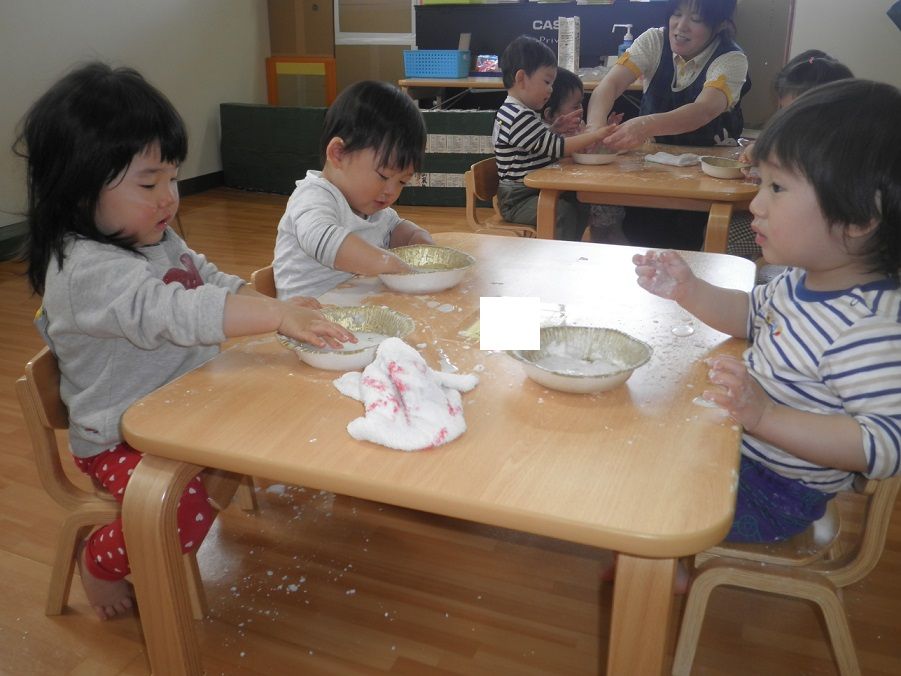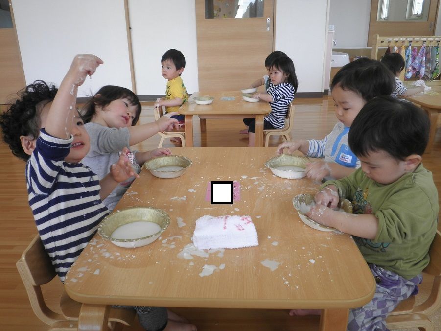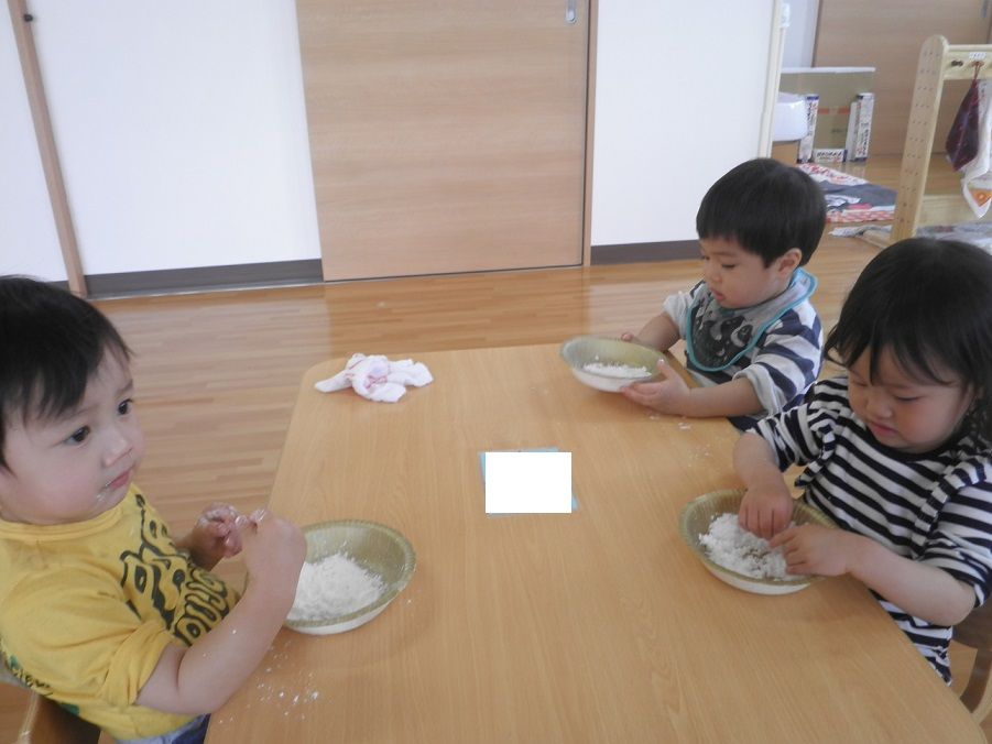 片栗粉を使って感触遊びをしました。