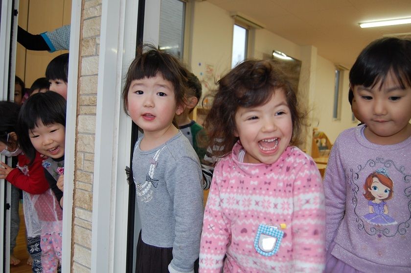 カーテンを開けた瞬間大喜びの子ども達