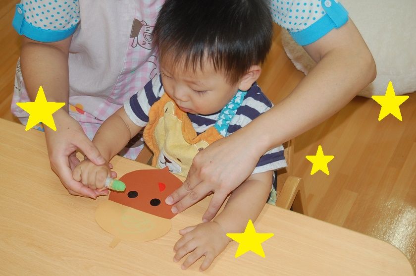 ひよこ組 9月製作 外遊び 2018年09月17日 9月の製作は、どんぐりに目や口のシールを貼り、クレヨンで色塗りをしましたひよこ組で、初めてシール貼りに挑戦指先を使って、上手にシールを貼ることができました真剣な表情ですね こちらは、芝生で遊んでいる様子です走ったり、お花を見つけたりと元気いっぱいに遊んでいます