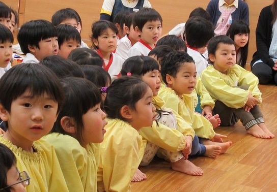 🎎ひなまつり集会② 2019年03月09日 ひなまつり集会では、ペープサートも楽しみました 主人公のお友達と、雛人形を並べていきます 『おだいりさま』『おひなさま』…どんどん出てくるひな人形に、みんな引き込まれています 最後は、金の屏風をつけて完成です 出来上がると、『わぁーーー』とみんな大喜びでした