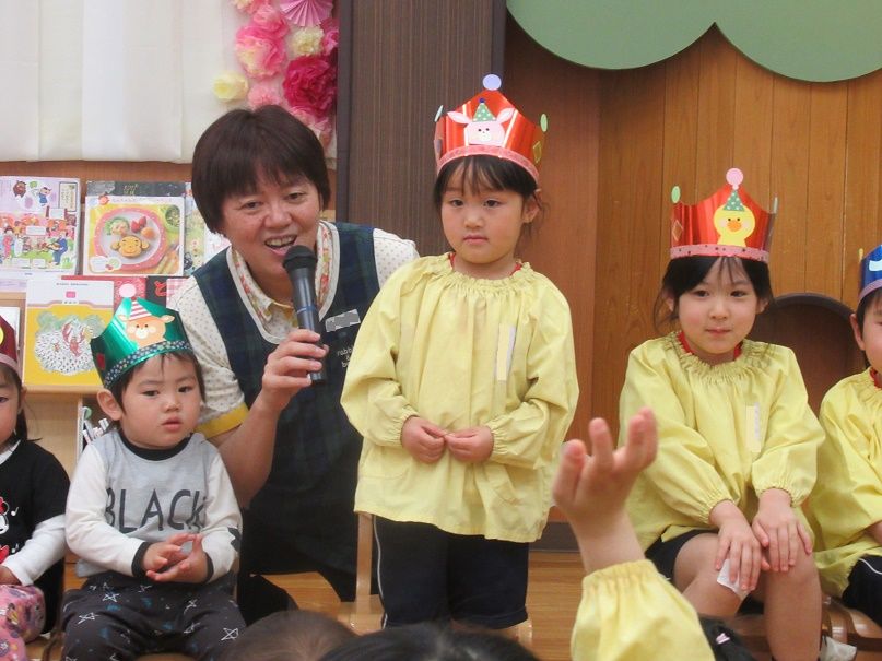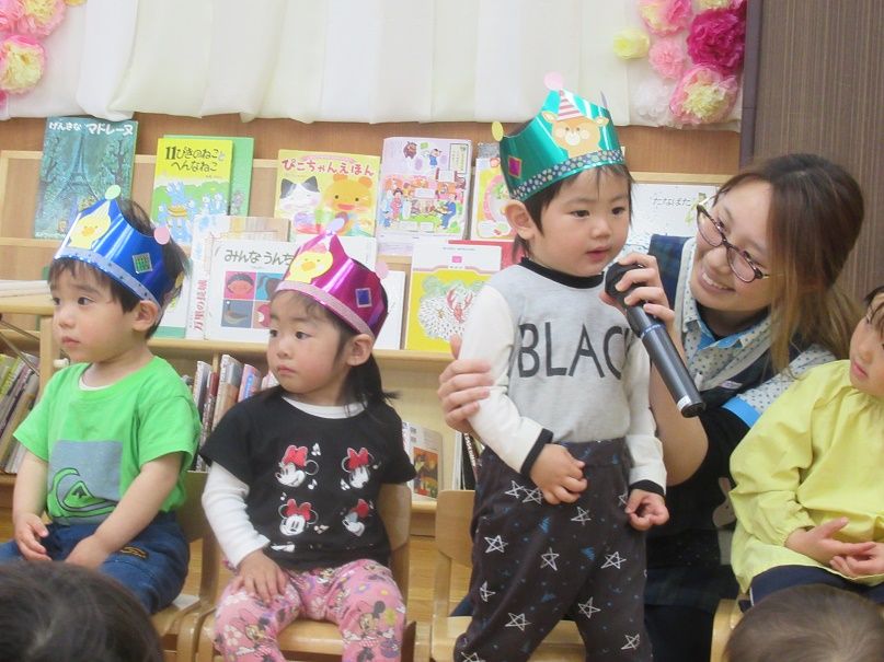 🌸4月 誕生会①🌸 2019年04月23日 今日は、お誕生会がありました 4月生まれのお友達は9人です新しいクラスになって初めてのお誕生会 緊張の表情でしたが…カメラを向けるとニッコリ笑顔 ひばりぐみ・かもめぐみ ぺんぎんぐみ ひよこぐみ インタビューにも答えてくれました その②につづく