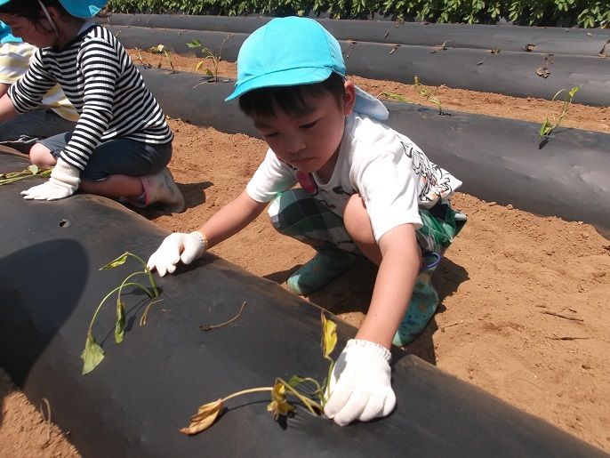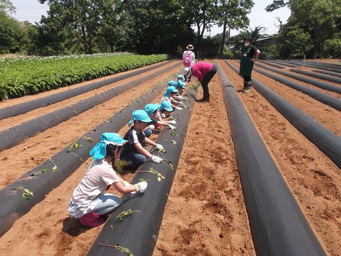 ひばりぐみ 芋苗植え 2019年06月06日 こんにちは。 大変遅くなりましたが、5月のさつまいもの苗植えの様子をお伝えします。園バスに乗り、ポケットファームどきどきへ行ってきました。暑かったのですが、最後にいただいた西瓜がおいしかったようで、おかわりしていましたよ。 次は、おいもほりです。みんなのおいも、大きくな~れ