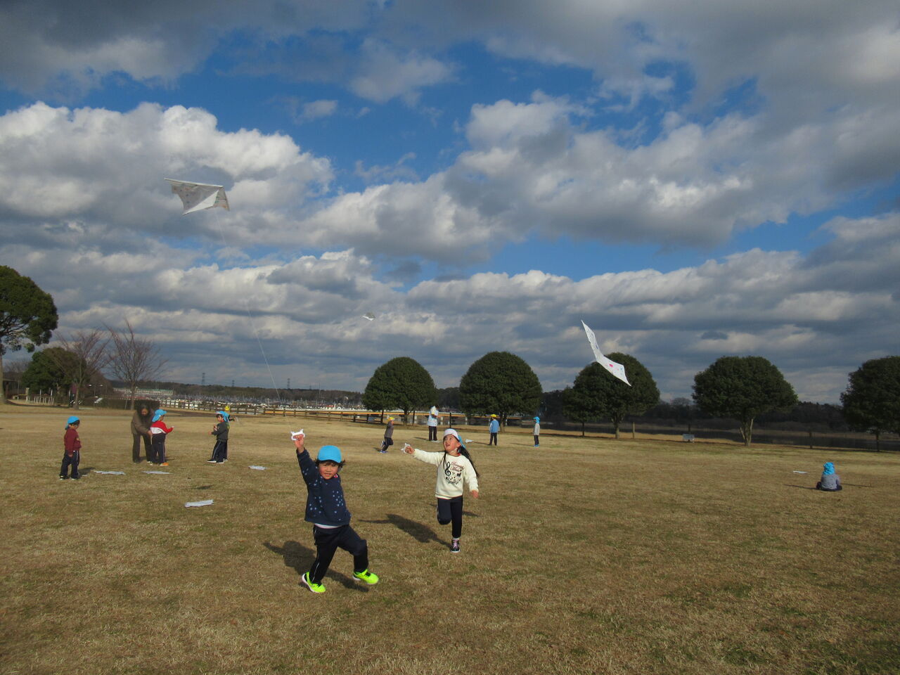 たこあげ② 2020年01月11日 ひばりぐみとかもめぐみは、公園でたこあげです 最初は難しかったけれど、だんだん上手になってきました たこあげ名人も現れました たくさん走って、風さんとお友達になりました たこあげ、楽しかったね