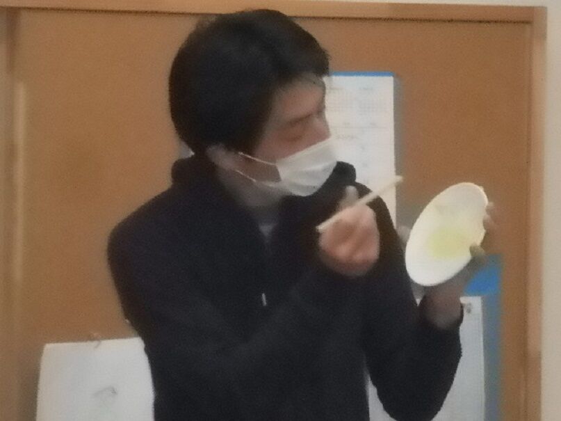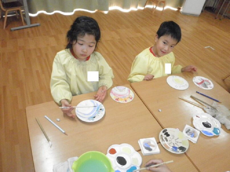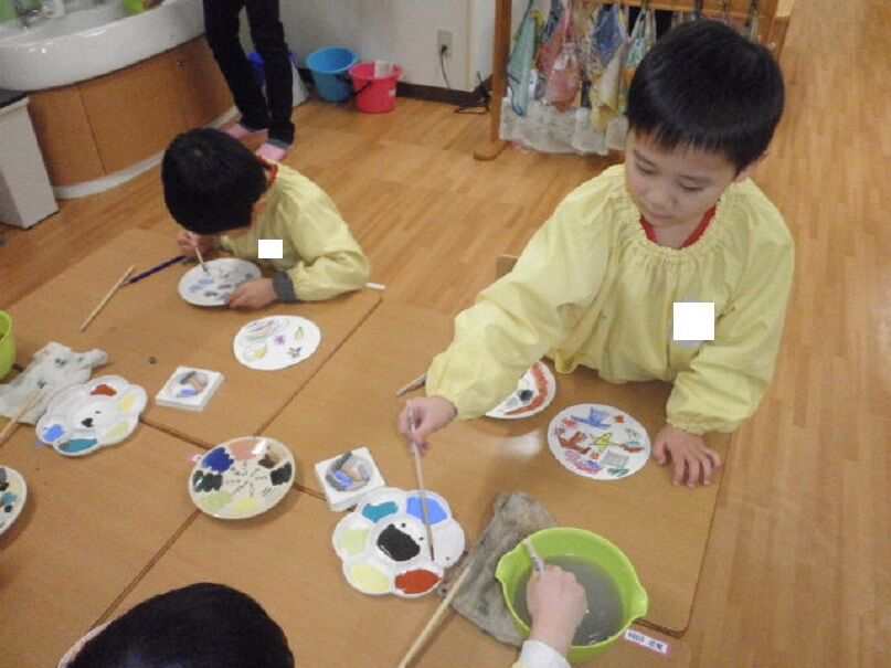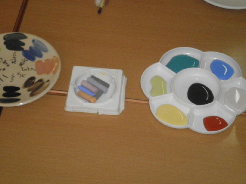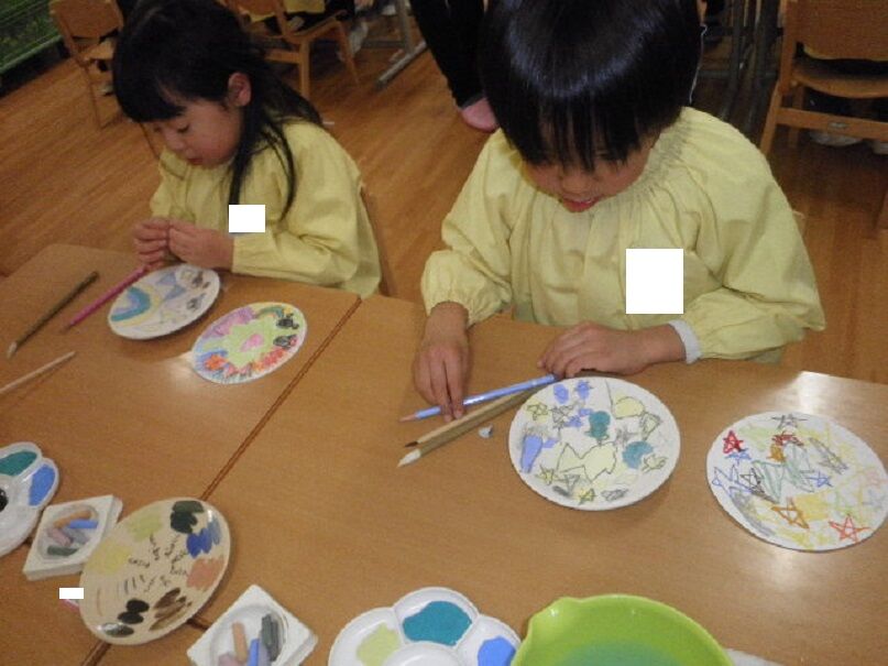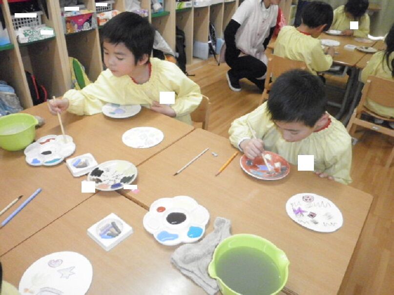 先日、講師の方に来て頂き、お皿に絵を描きました