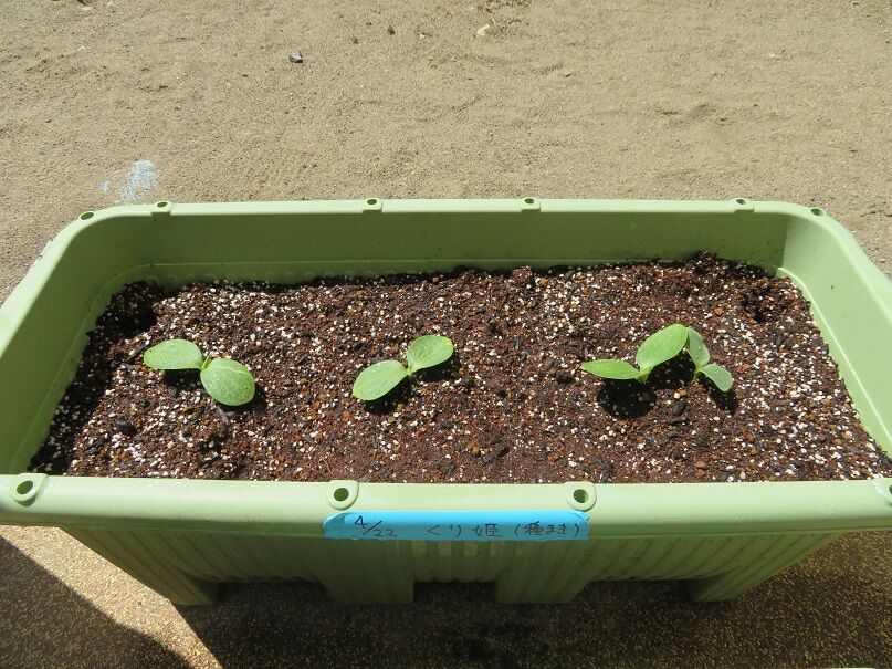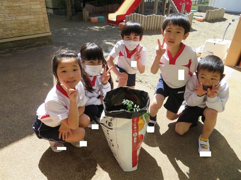 かもめ組 ミニトマトの苗を植えました! 2021年05月13日 年長になって1ヶ月が過ぎ、みんな元気いっぱい色々なことに挑戦し、頑張っています クラスでミニトマト、かぼちゃ、きゅうりの栽培を始めましたかぼちゃときゅうりは、種をまくところからでしたが、無事に芽が出て一安心毎日観察をして、生長を楽しみにしています かぼちゃの芽↓ きゅうりの芽↓