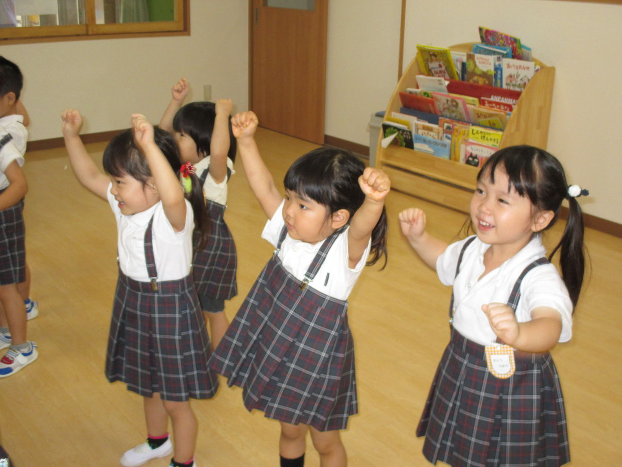 保健シアター☆うんちについて 2015年07月18日 うんちについて 何するのかな~楽しみ お話しを聞く準備、、、オッケー うんちについての絵本だーうんちの絵本『うんぴ うんご うんにょ うんち』 みんな真剣に聞いてるね 食べた物が胃に入って、大腸を通りながらうんちになって出てくるんだよ うんちになった~ 話しを聞いた後は、、、うんち体操『鬼のパンツ』の替え歌に合わせて 体をゆらゆら~ ん~ぱッ 横にグイ~ン うんち体操楽しかったこれでうんちがたくさん出るかな~