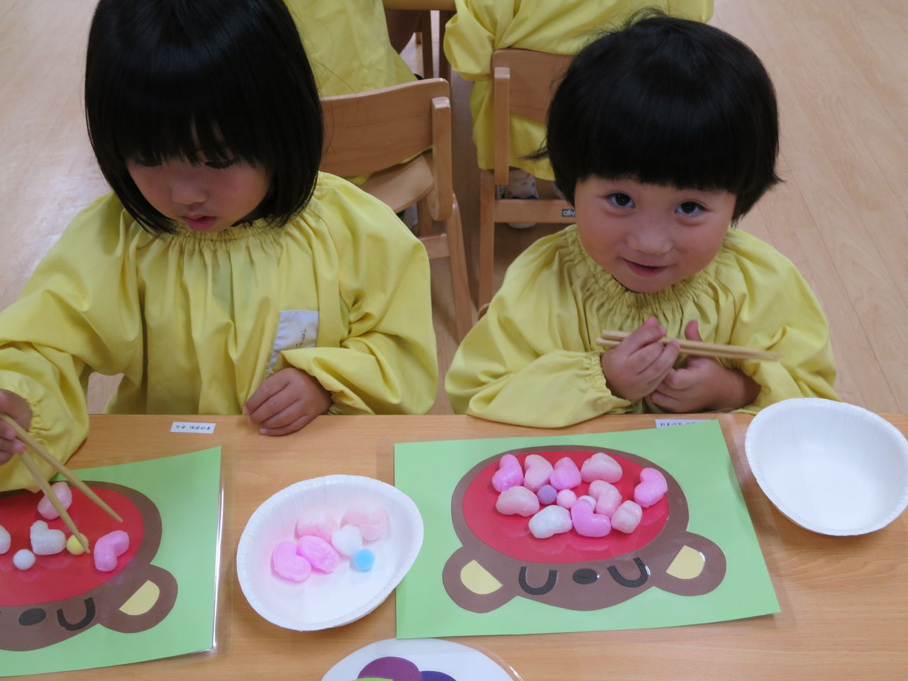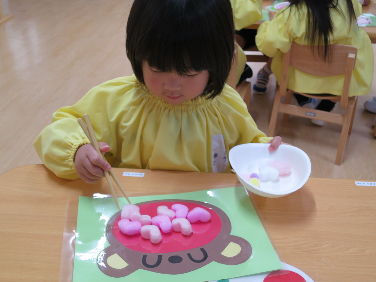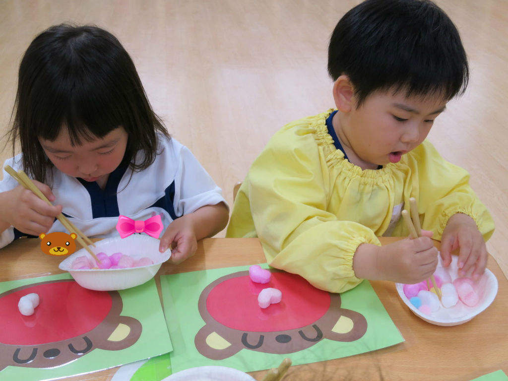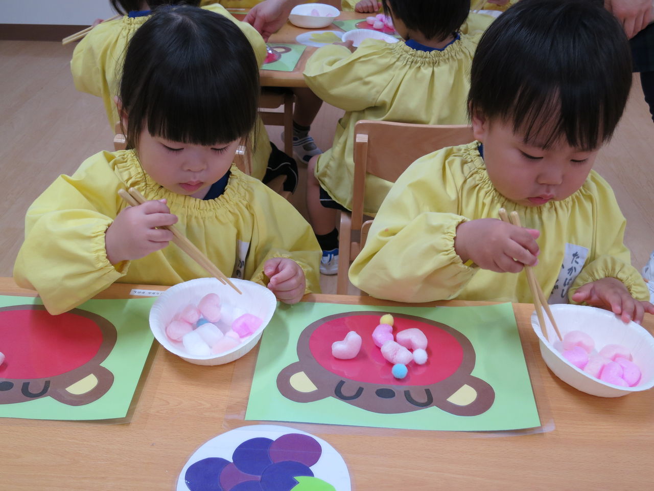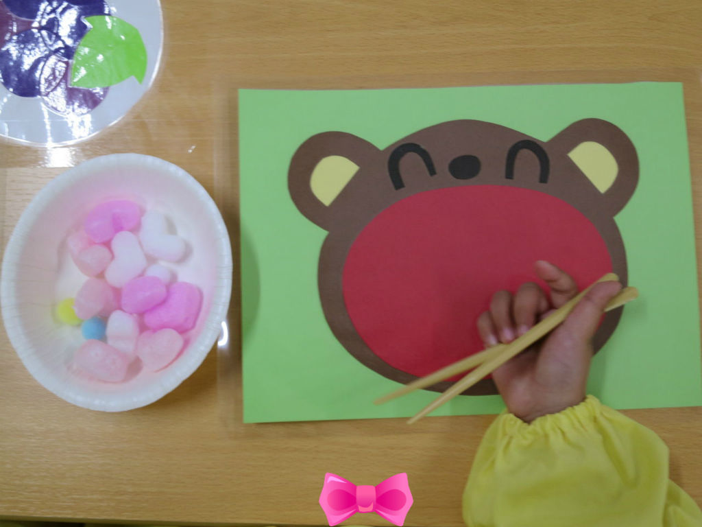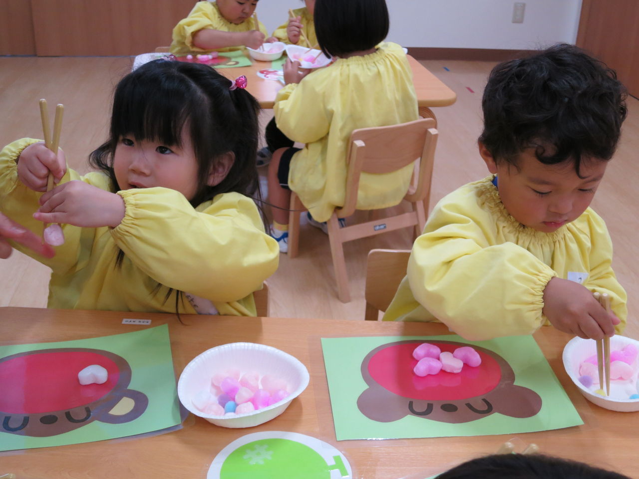 ☆体育・お箸の練習☆ 2016年05月30日 こんにちは こじか組です今回は、保育参観でもご覧頂きましたが、体育とお箸の練習をUPしたいと思います!! まず、体育の時間です 準備体操「いち、に、さん、しっ」男の子と女の子に分かれて… みんな上手に先生の真似っこです順番に並んで... マットをよじ登る!!! 跳び箱を渡ってジャンプ!!! リバーストーンを渡ります次は僕の番だ!! お友達と一緒だから楽しいよっ 毎週火曜日の体育の時間が待ち遠しい子ども達です 変わりまして、お箸の練習風景ですまずは、先生と持ち方の練習みんな真剣です 食いしん坊なクマちゃんのお口にお菓子を入れてあげましょう みんな脇目もふらずに真剣です 反対の手が出そうになるのをこらえて 「先生、これでいいのかな??」 いっぱい入れられたね!! お箸の練習楽しいっ遊び感覚で楽しみながらお箸の練習を行っています 次回の更新をお楽しみに~~~