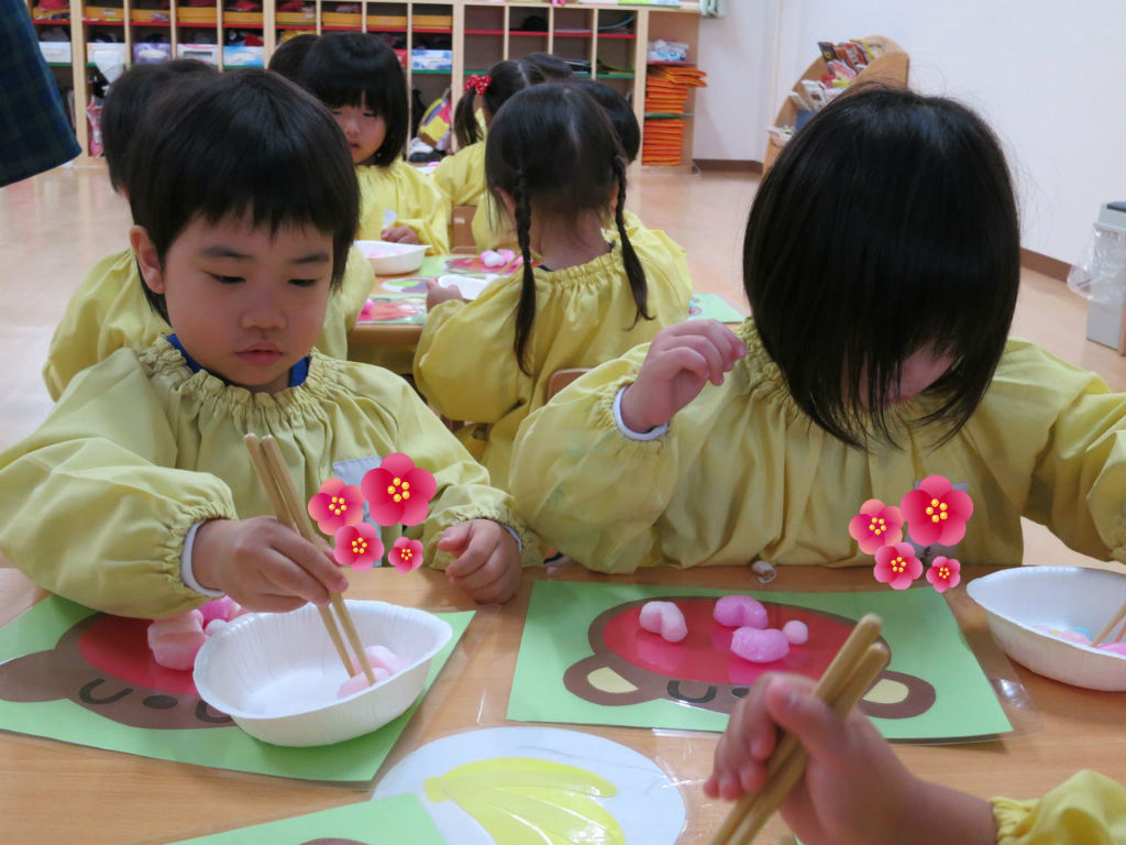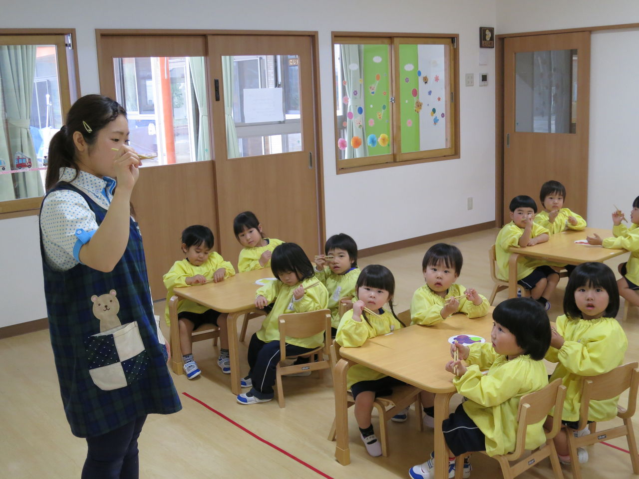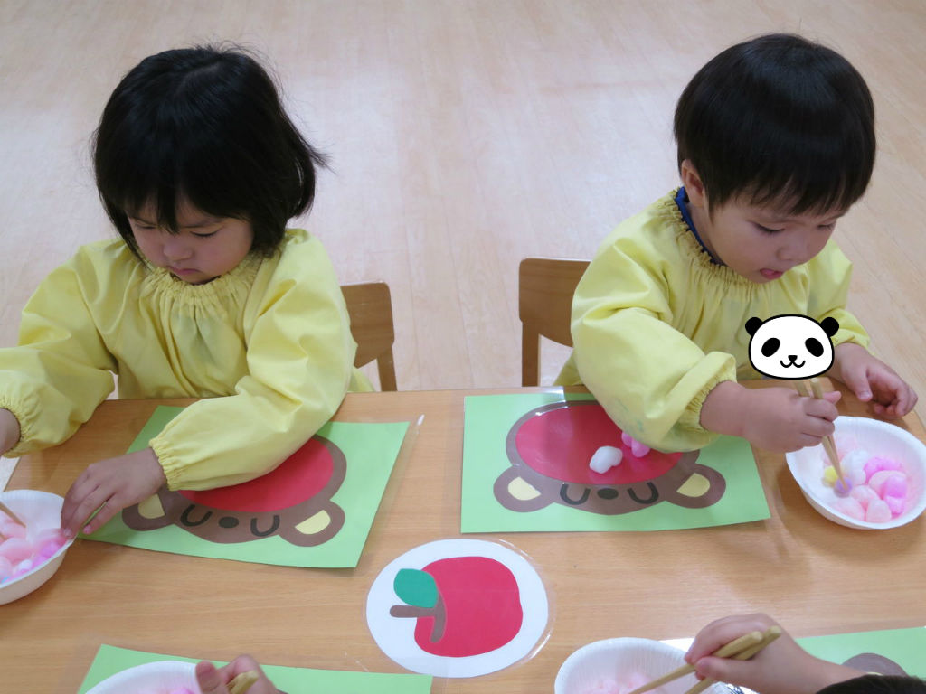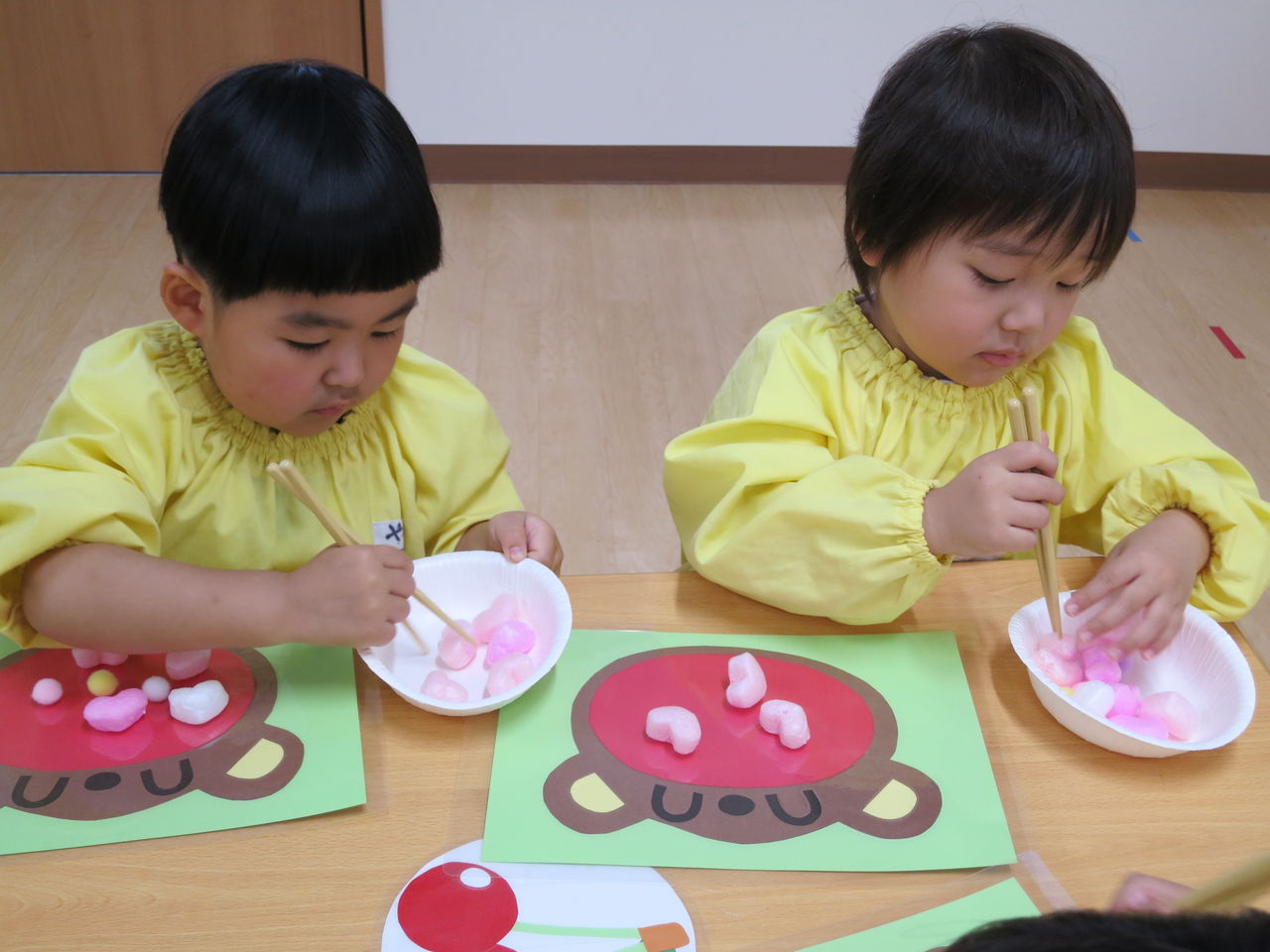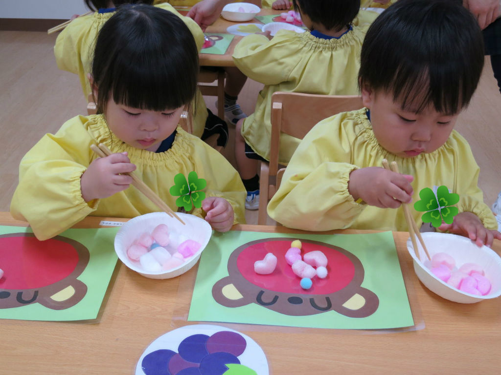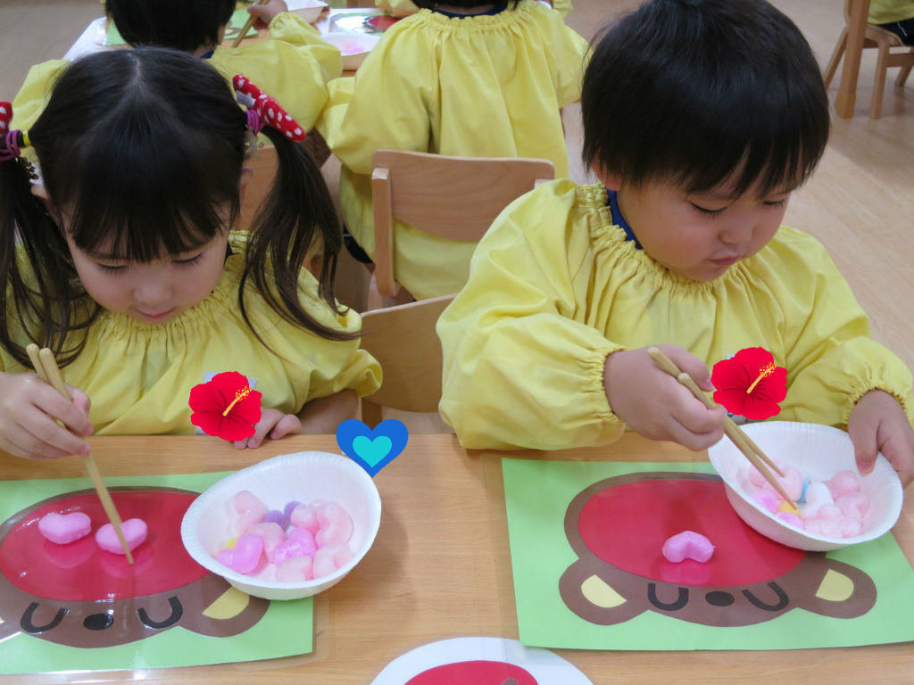 ☆体育・お箸の練習☆ 2016年05月30日 こんにちは こじか組です今回は、保育参観でもご覧頂きましたが、体育とお箸の練習をUPしたいと思います!! まず、体育の時間です 準備体操「いち、に、さん、しっ」男の子と女の子に分かれて… みんな上手に先生の真似っこです順番に並んで... マットをよじ登る!!! 跳び箱を渡ってジャンプ!!! リバーストーンを渡ります次は僕の番だ!! お友達と一緒だから楽しいよっ 毎週火曜日の体育の時間が待ち遠しい子ども達です 変わりまして、お箸の練習風景ですまずは、先生と持ち方の練習みんな真剣です 食いしん坊なクマちゃんのお口にお菓子を入れてあげましょう みんな脇目もふらずに真剣です 反対の手が出そうになるのをこらえて 「先生、これでいいのかな??」 いっぱい入れられたね!! お箸の練習楽しいっ遊び感覚で楽しみながらお箸の練習を行っています 次回の更新をお楽しみに~~~