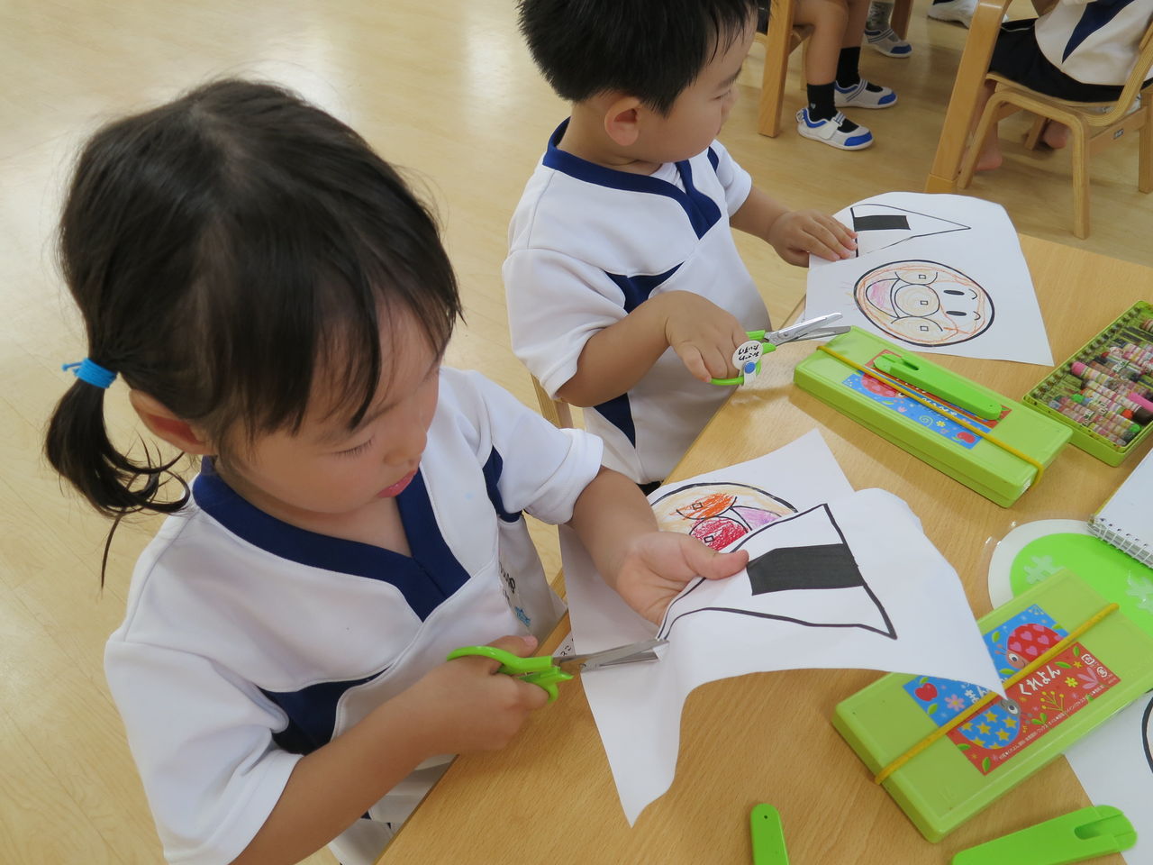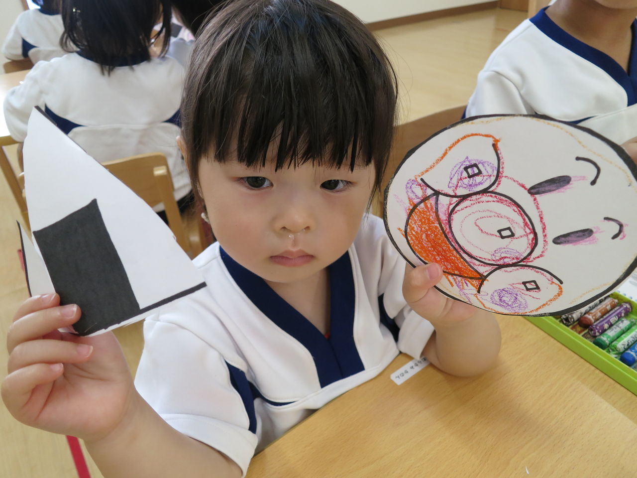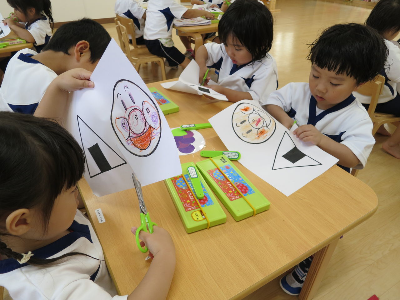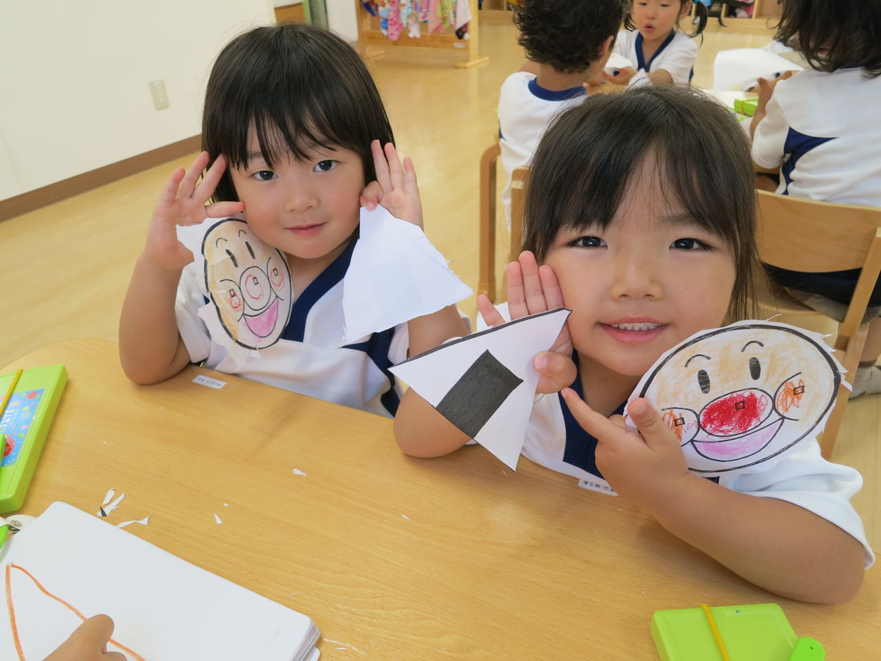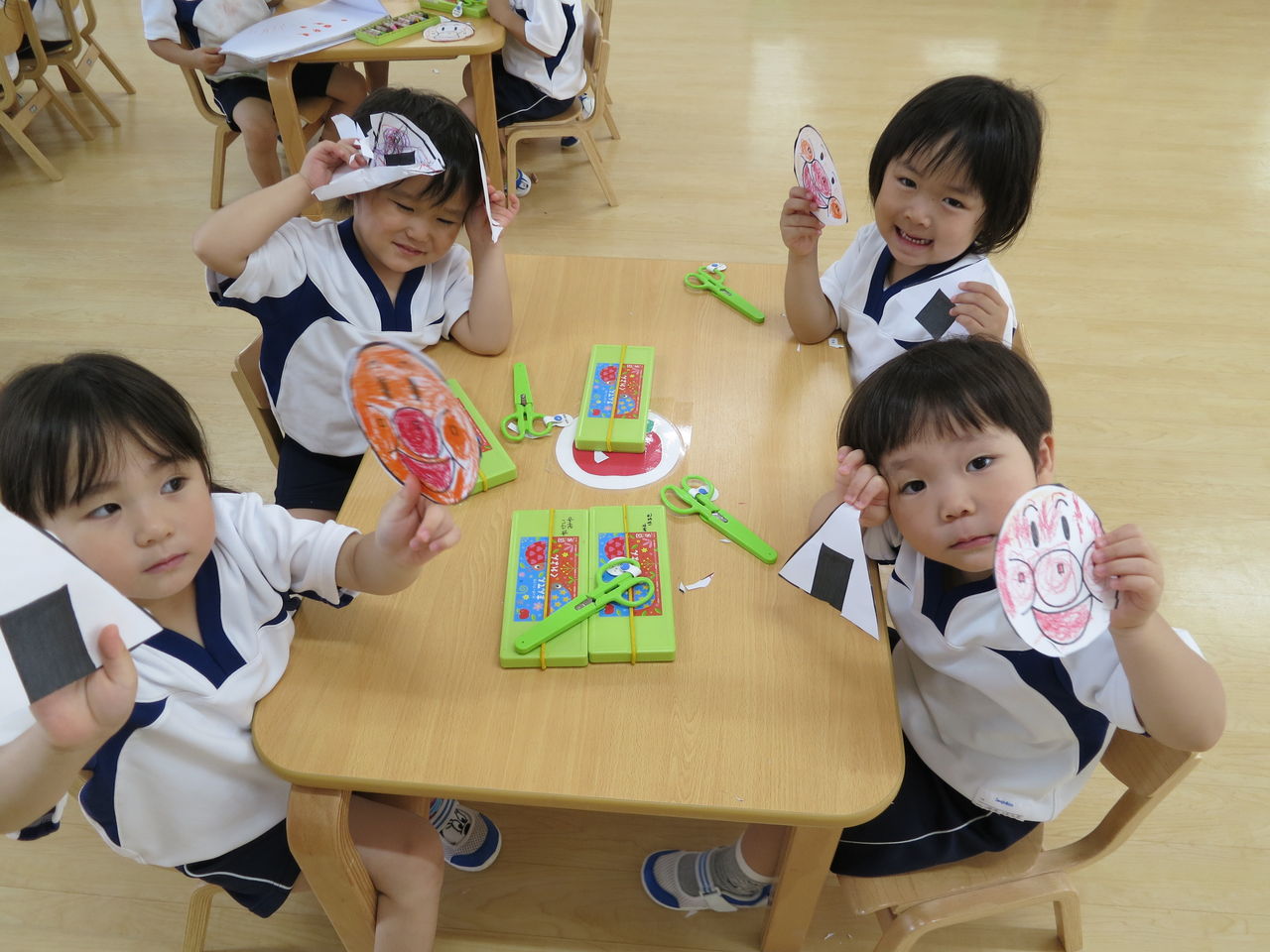 おにぎりの△とアンパンマンの〇を切りました![]()
