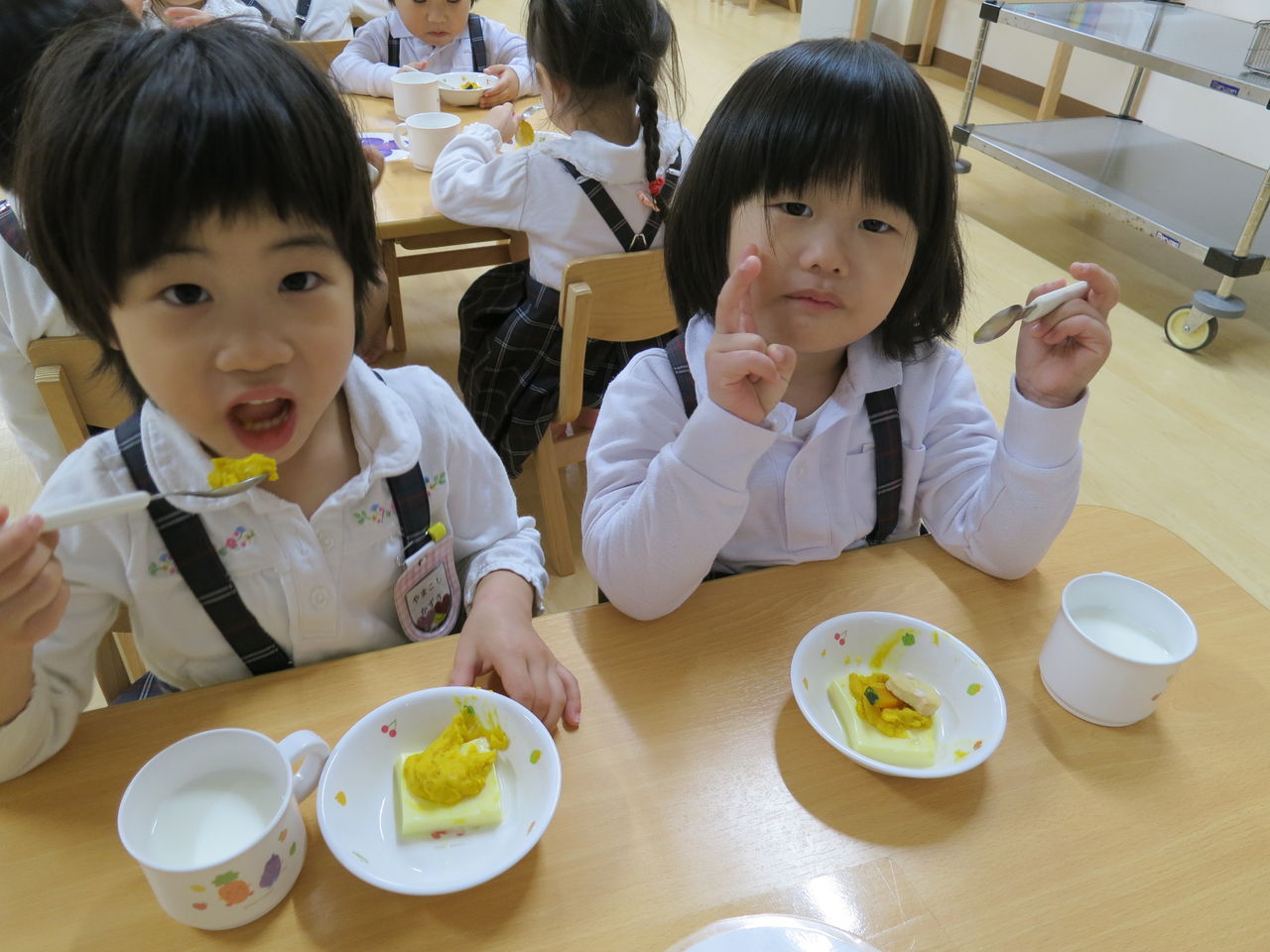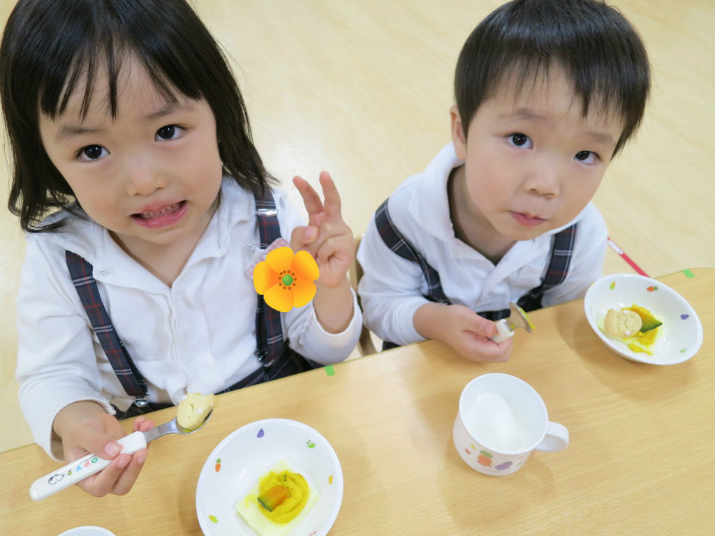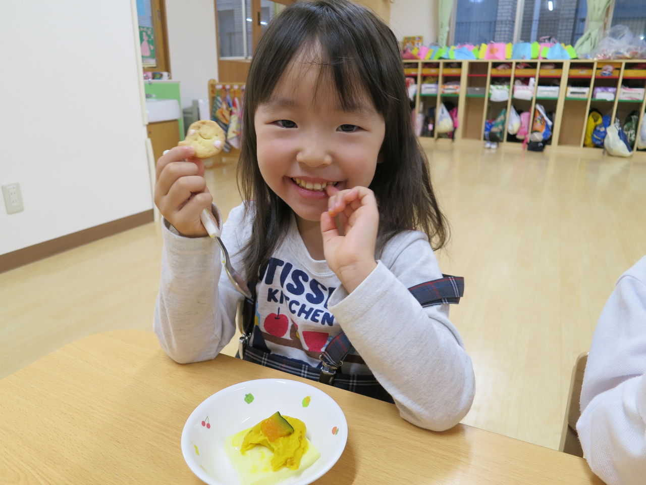 保育園に戻ってからは、ハロウィンに因んだおやつを食べました![]()