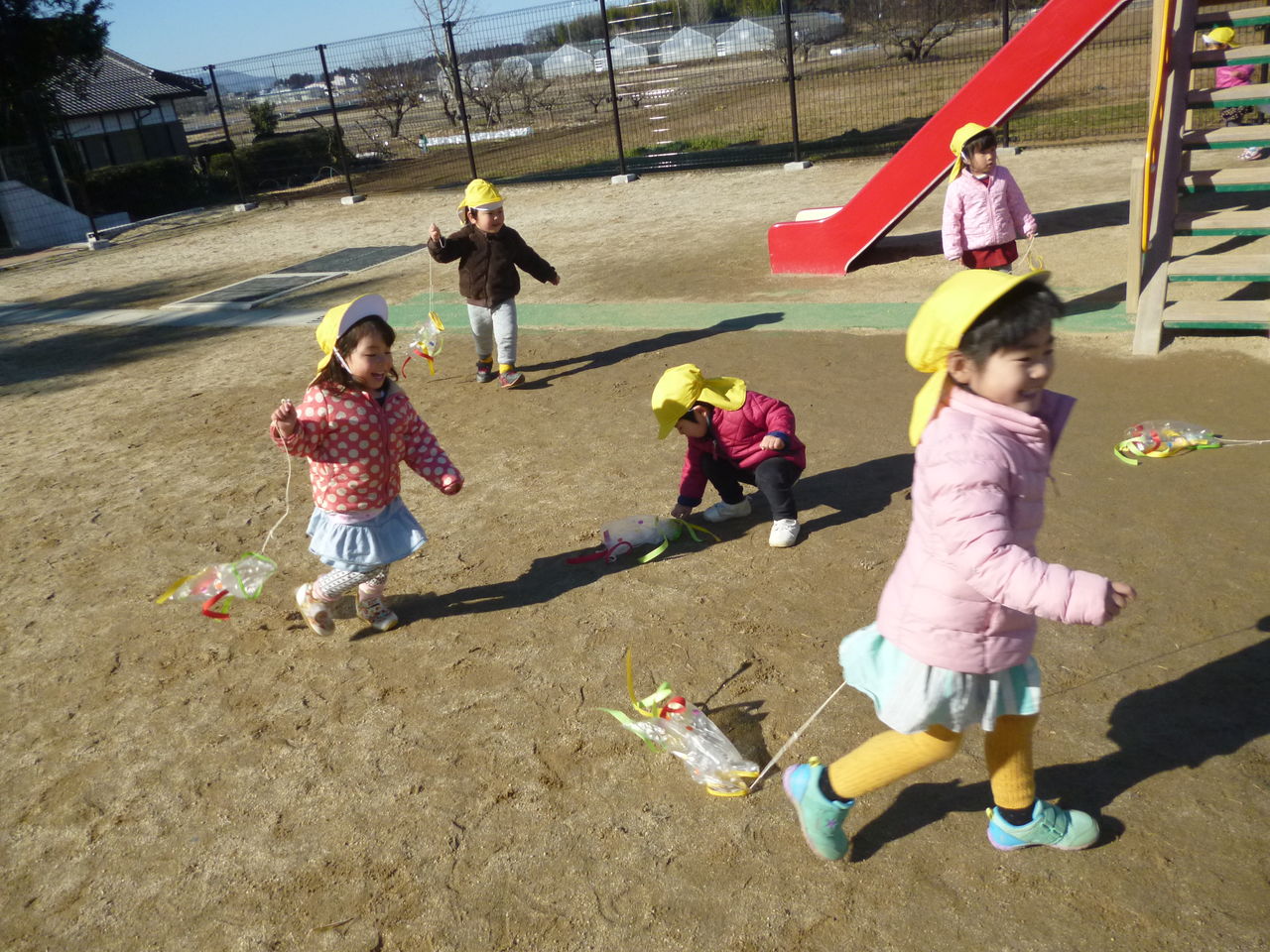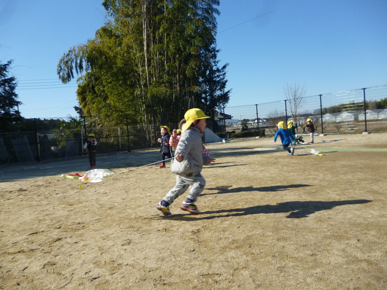 たこあげ☆うさぎぐみ☆ 2017年02月10日 こんにちは!うさぎ組です先日行った【たこあげ】の様子をご覧ください走り出すと転んでしまうお友達もいましたが、、、 すぐに立ち上がりたこあげを楽しむことが出来ました一生懸命に走る風の子さん達でしたたこあげが終わってから大型遊具やお砂場で遊びましたお友達と仲良く楽しく遊びました次回のブログもおたのしみに