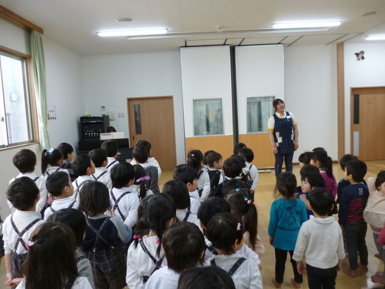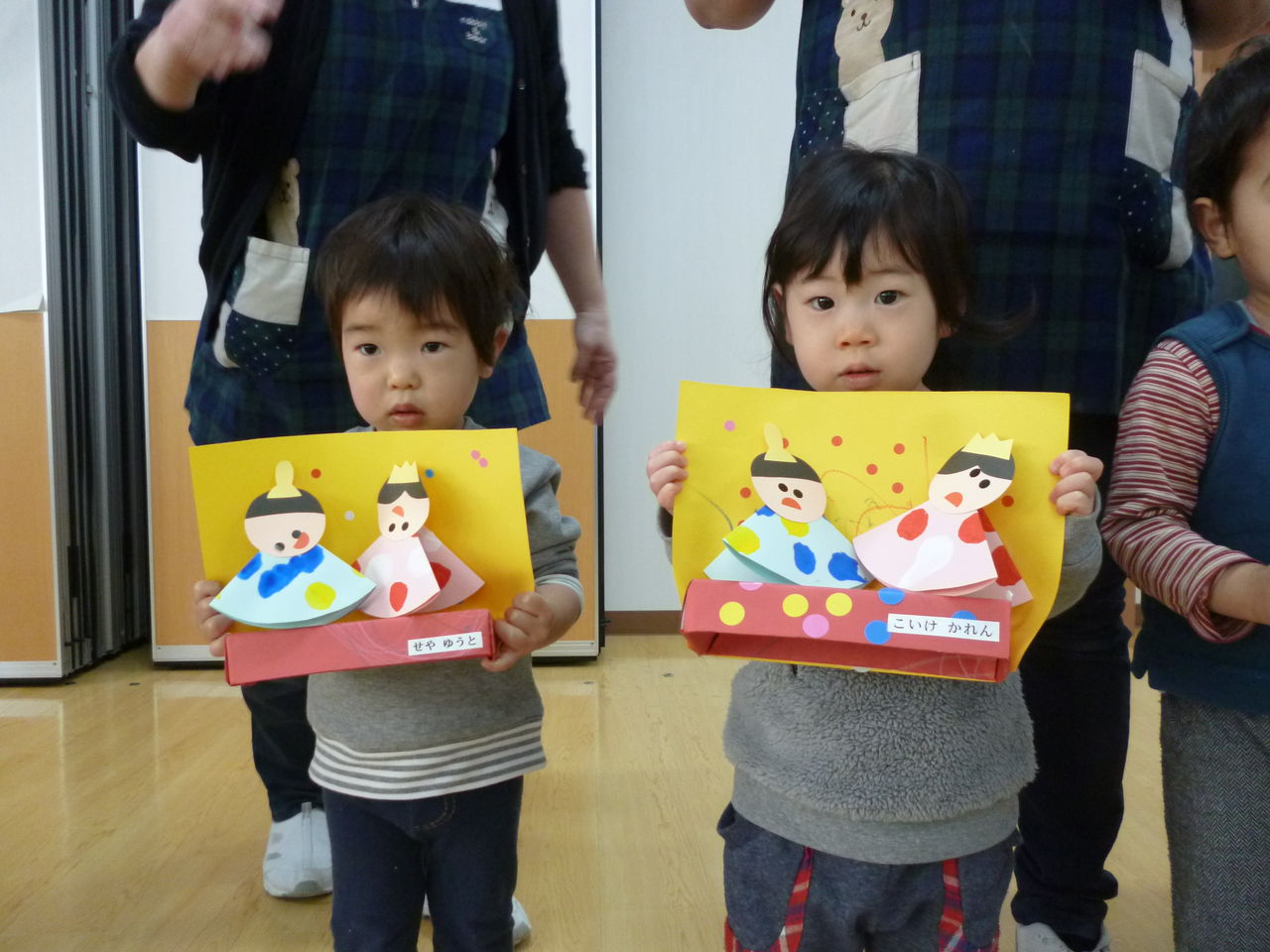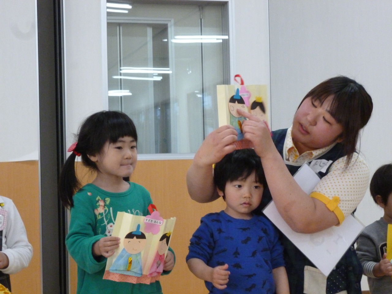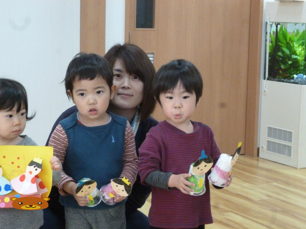 雛祭り集会 2017年03月13日 今回は、先日行われたひなまつり祝会の様子をお伝えしす。ひなまつりと言えば、やっぱりこの歌。「うれしいひなまつり」みんなで元気に歌います。子ども達は、自分でおひなさまを作りました。おひなさまを披露。 見て見て。かわいいでしょ。おひなさま作りでは、色々と工夫した所や、難しかった所があったようです。クラスの発表者が皆に教えてくれました。 上手にできましたね。ひとつひとつ個性が出ています。 ここが難しかったよ。私と同じだ。 先生からは、ひな祭りのお話。みんな真剣に聞いています。楽しいひなまつりになりましたね。またひとつ 楽しかった思い出が増えたスワンの子ども達です。