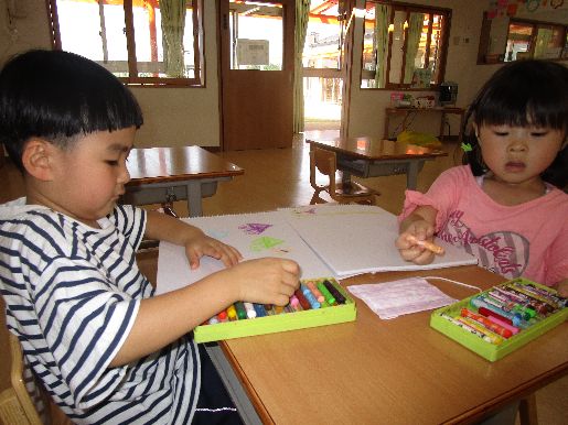 お絵描きをしたり、粘土をしたり、楽しみながら遊んでいます