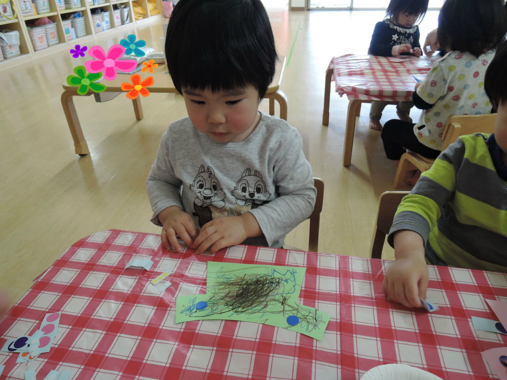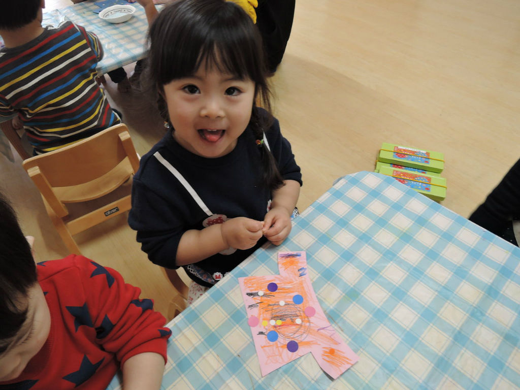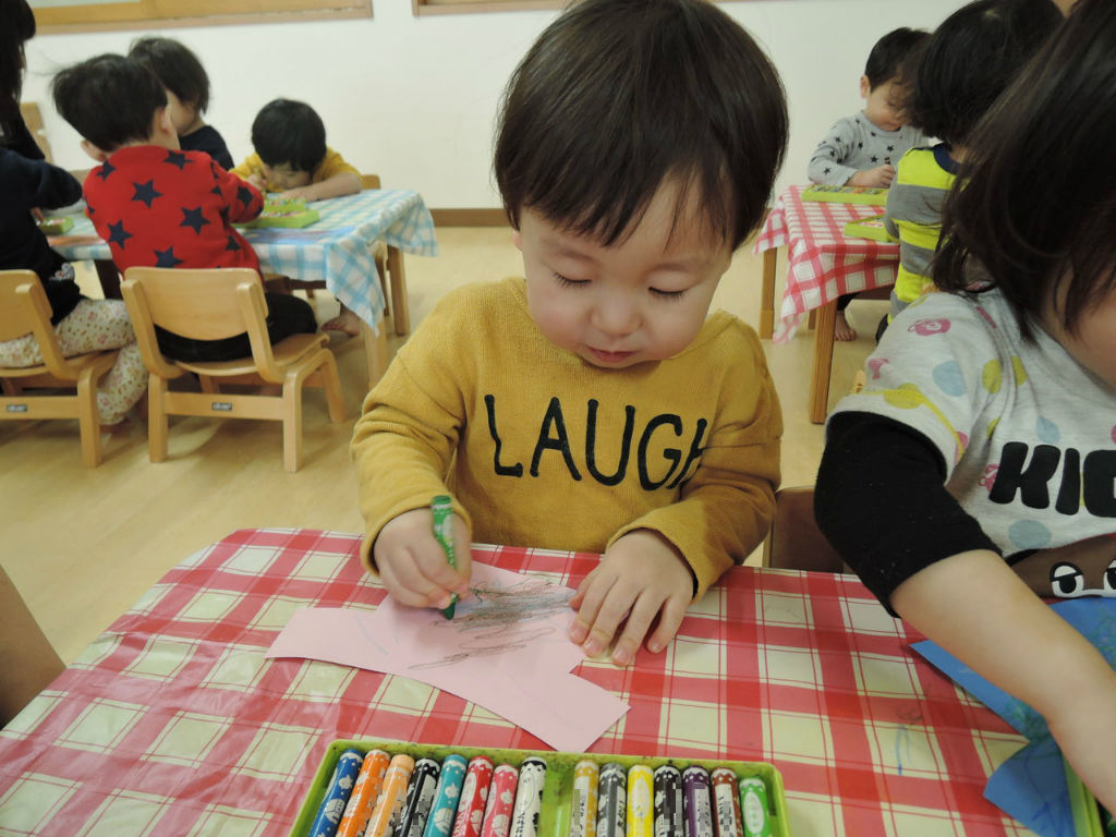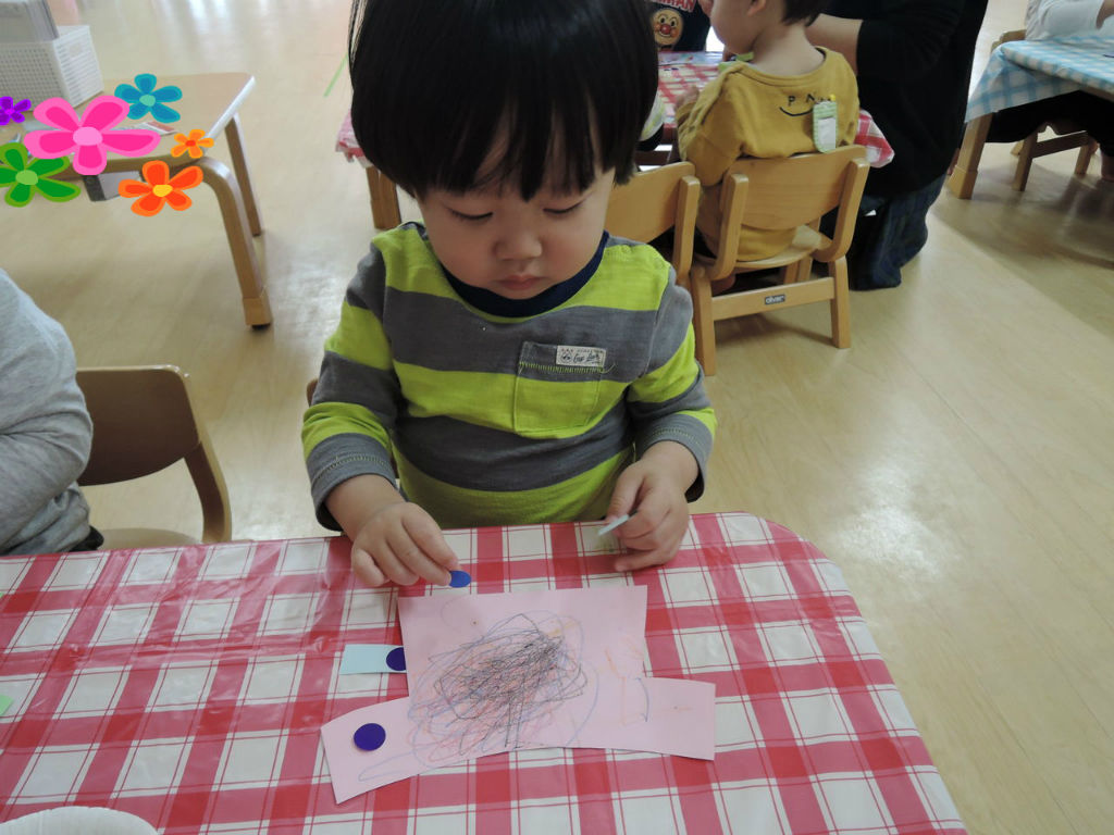 りす組♪製作「洋服」 2019年03月12日 皆さん、こんにちわ!!(。・ω・)ノ゙今回は、洋服製作の様子をお伝えします♪まずは、洋服選びから自分で好きな色の洋服を選びます洋服選びが終わったら、模様を描きます「何色にしようかな~」真剣ですクレヨンを持つ手も、上手になりました次は、シール貼りです(*゚∀゚)っ「どこに貼ろうかな~」「上手に出来たよ」素敵な洋服が出来上がりましたまたやろうね(☆゚∀゚)