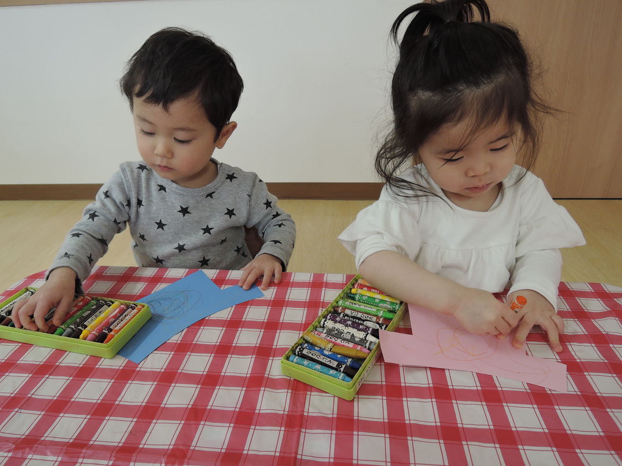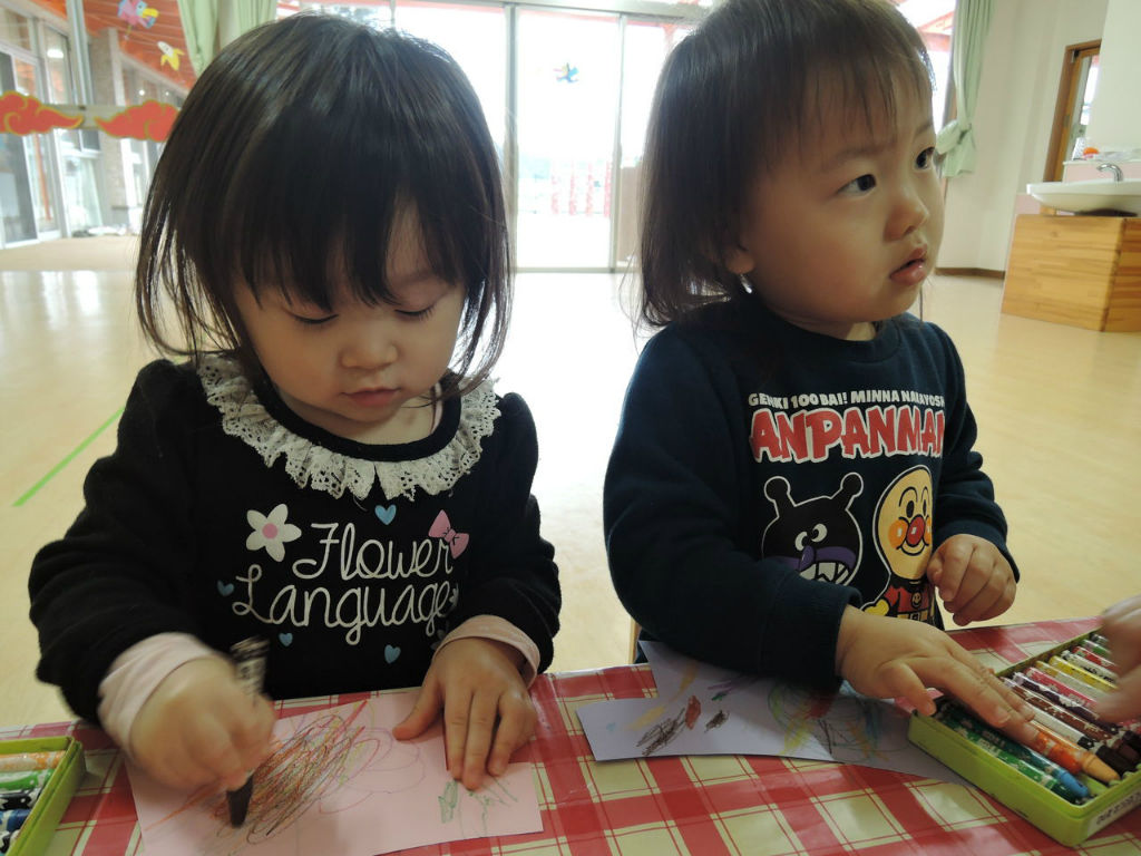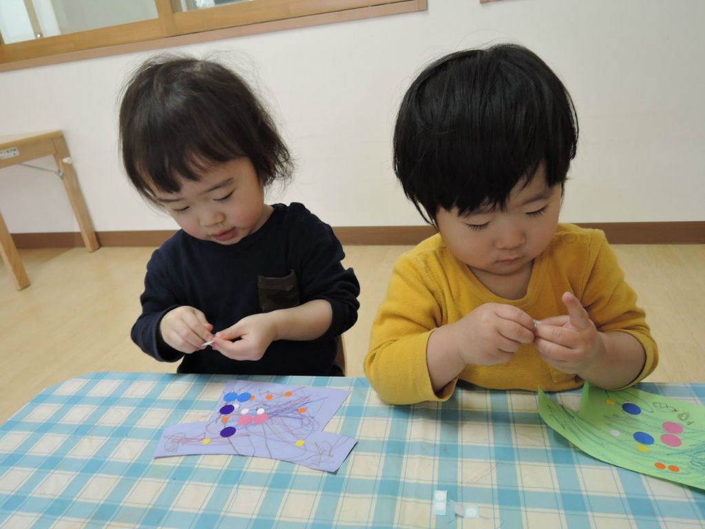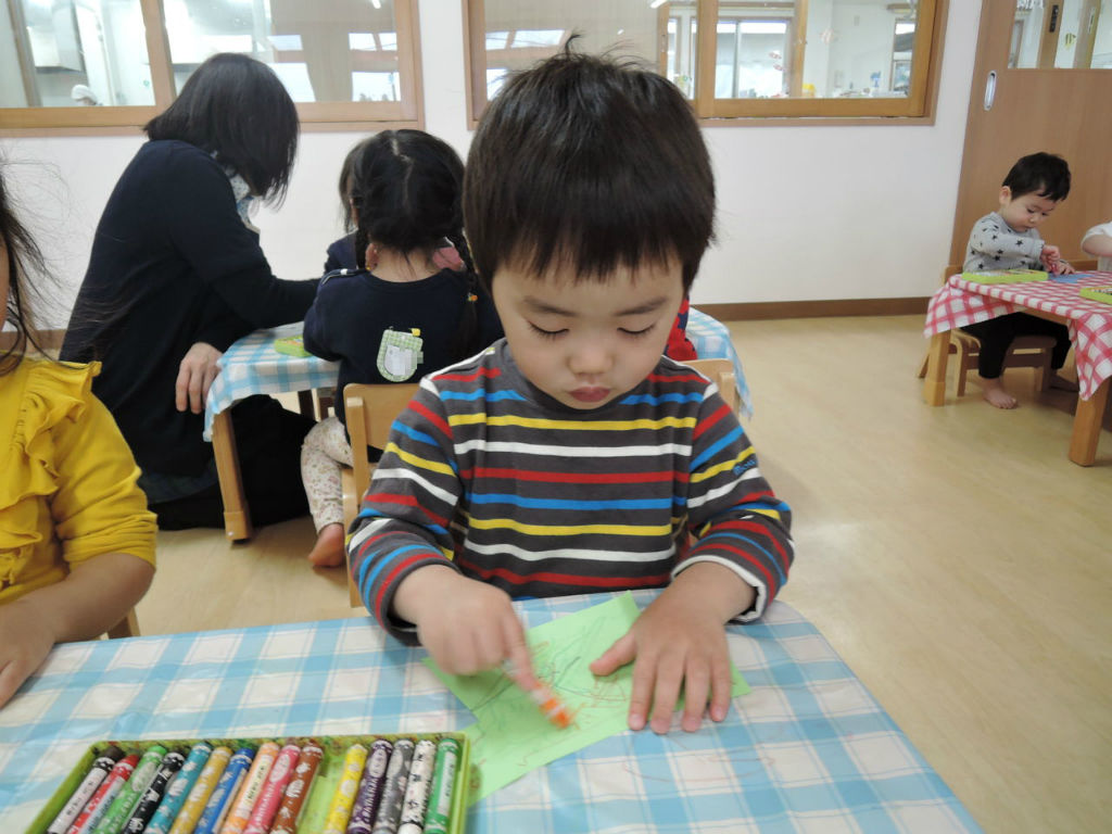 りす組♪製作「洋服」 2019年03月12日 皆さん、こんにちわ!!(。・ω・)ノ゙今回は、洋服製作の様子をお伝えします♪まずは、洋服選びから自分で好きな色の洋服を選びます洋服選びが終わったら、模様を描きます「何色にしようかな~」真剣ですクレヨンを持つ手も、上手になりました次は、シール貼りです(*゚∀゚)っ「どこに貼ろうかな~」「上手に出来たよ」素敵な洋服が出来上がりましたまたやろうね(☆゚∀゚)