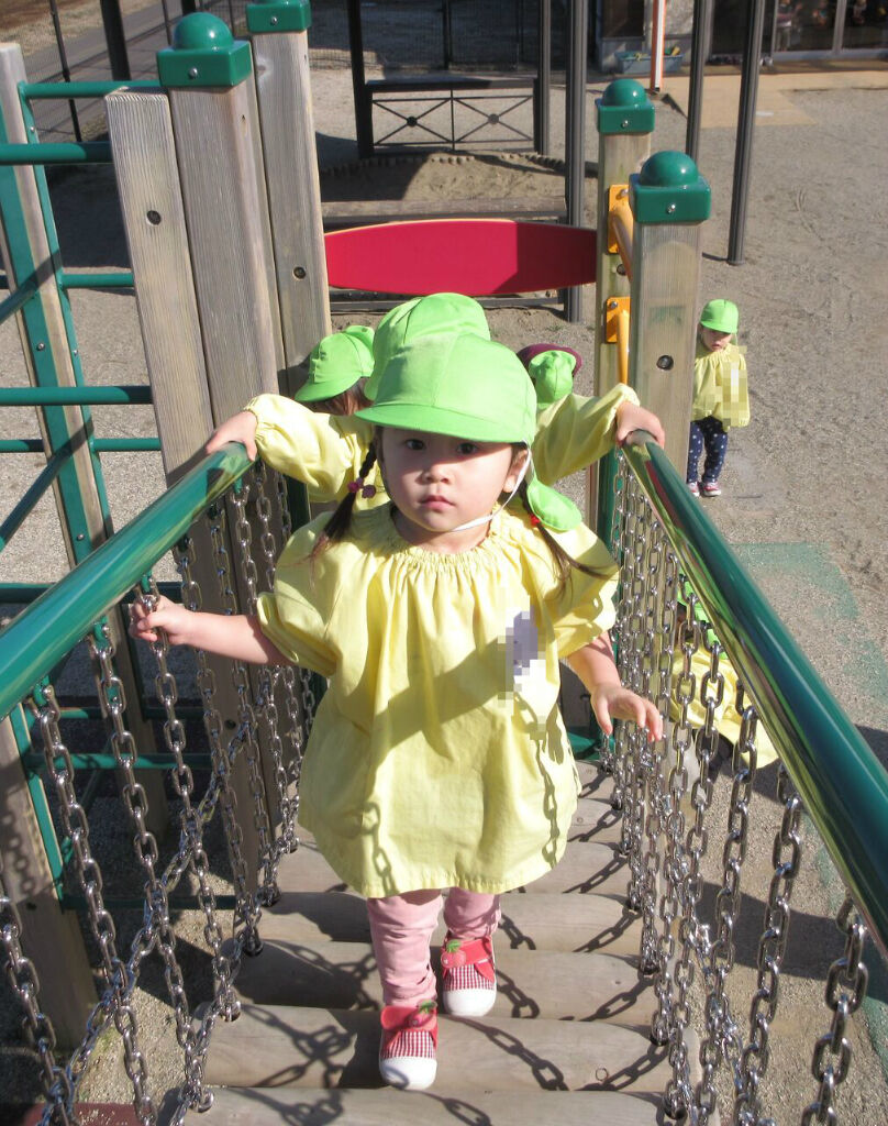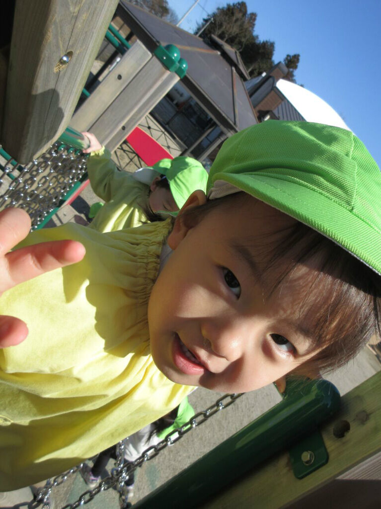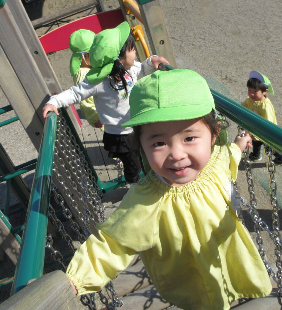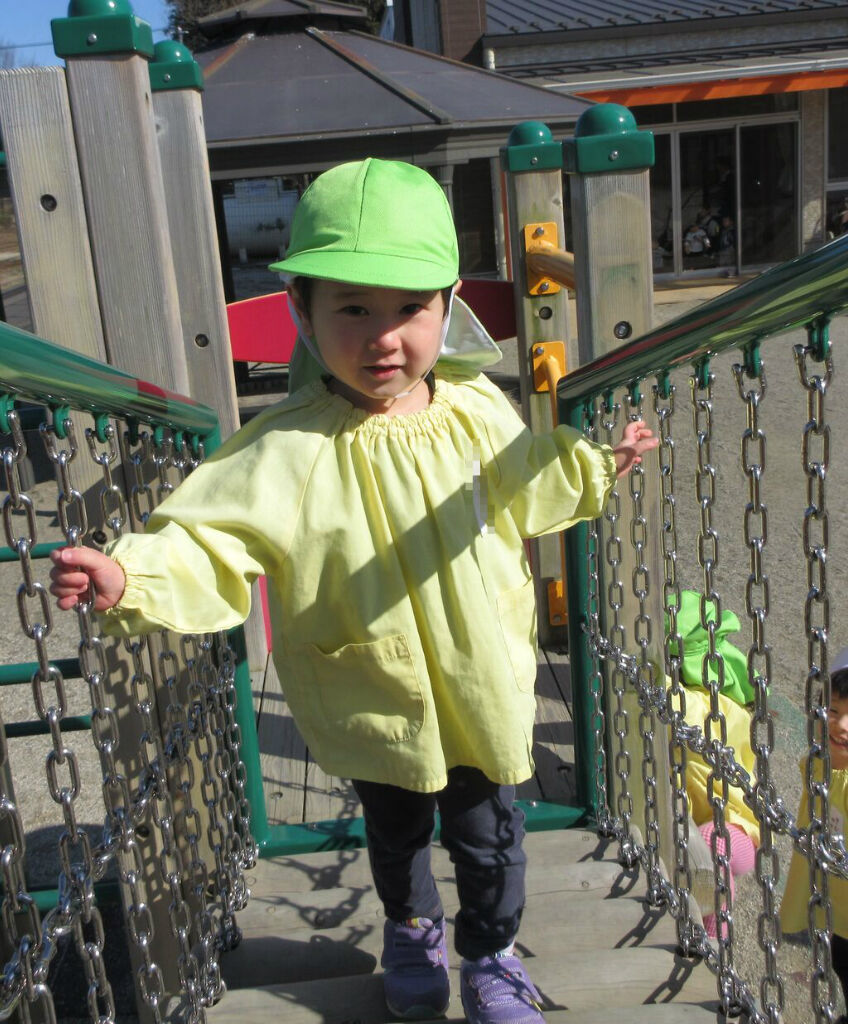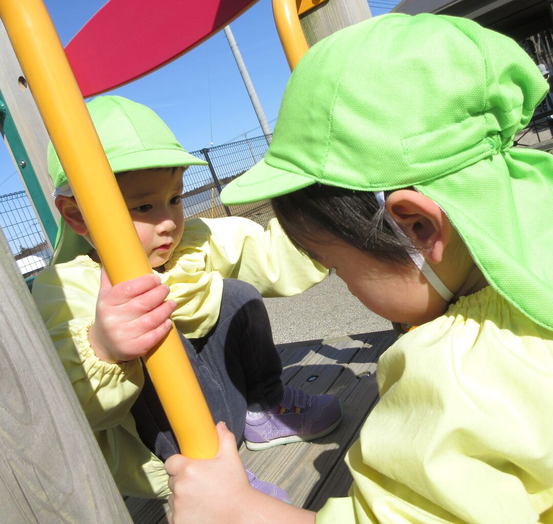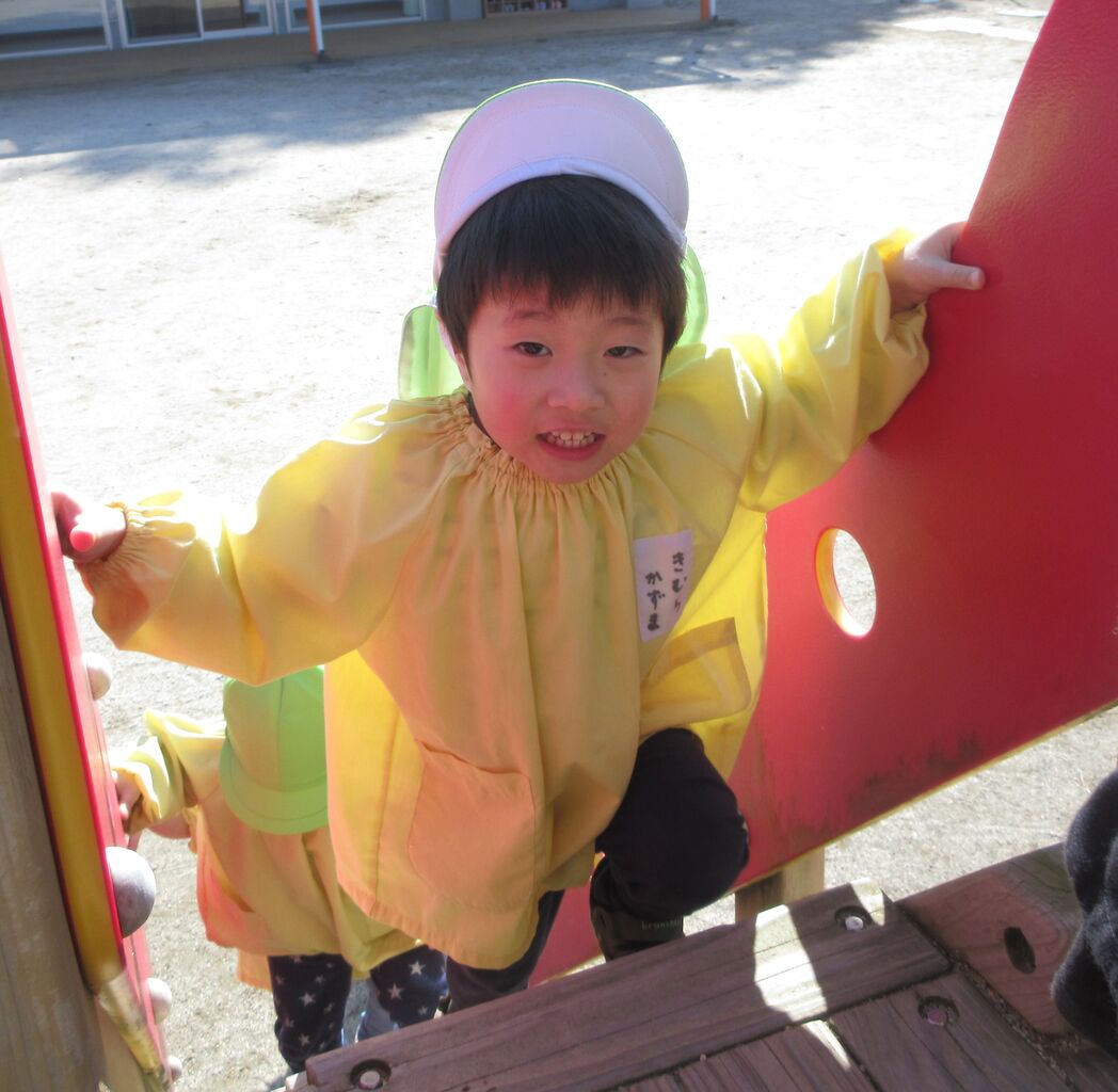 戸外遊びでは、大型遊具で遊んだり、登り棒を登ったりしました。