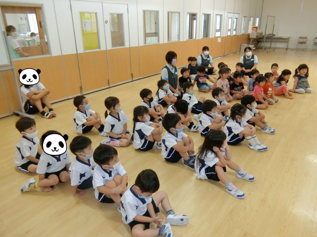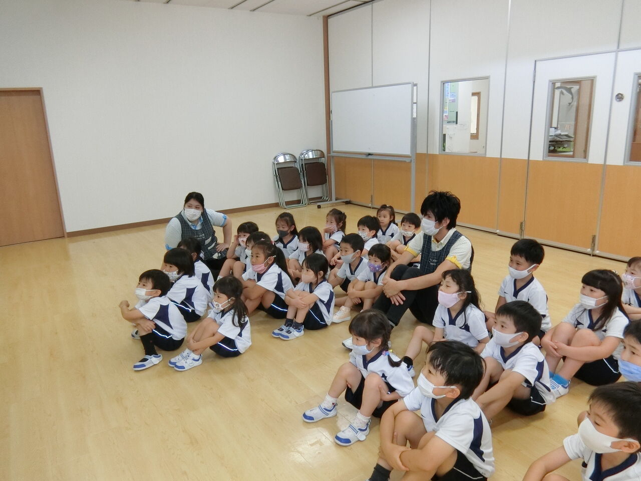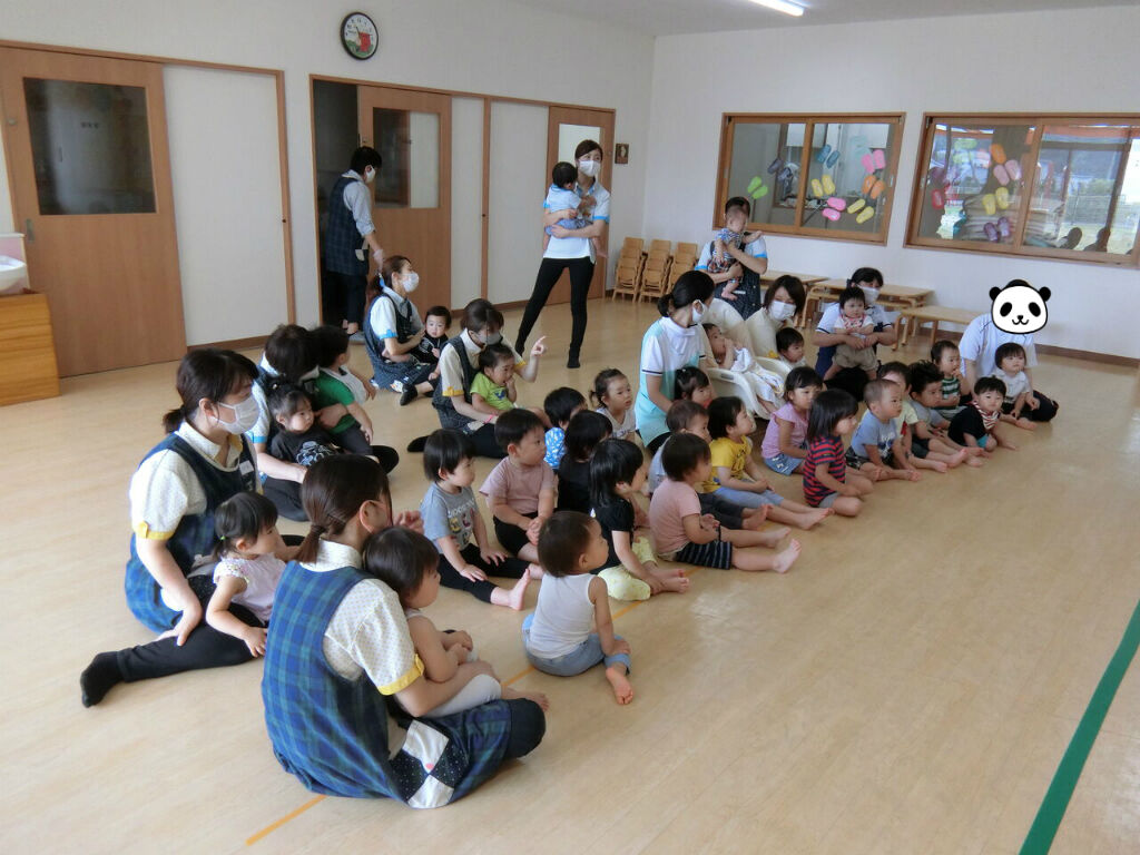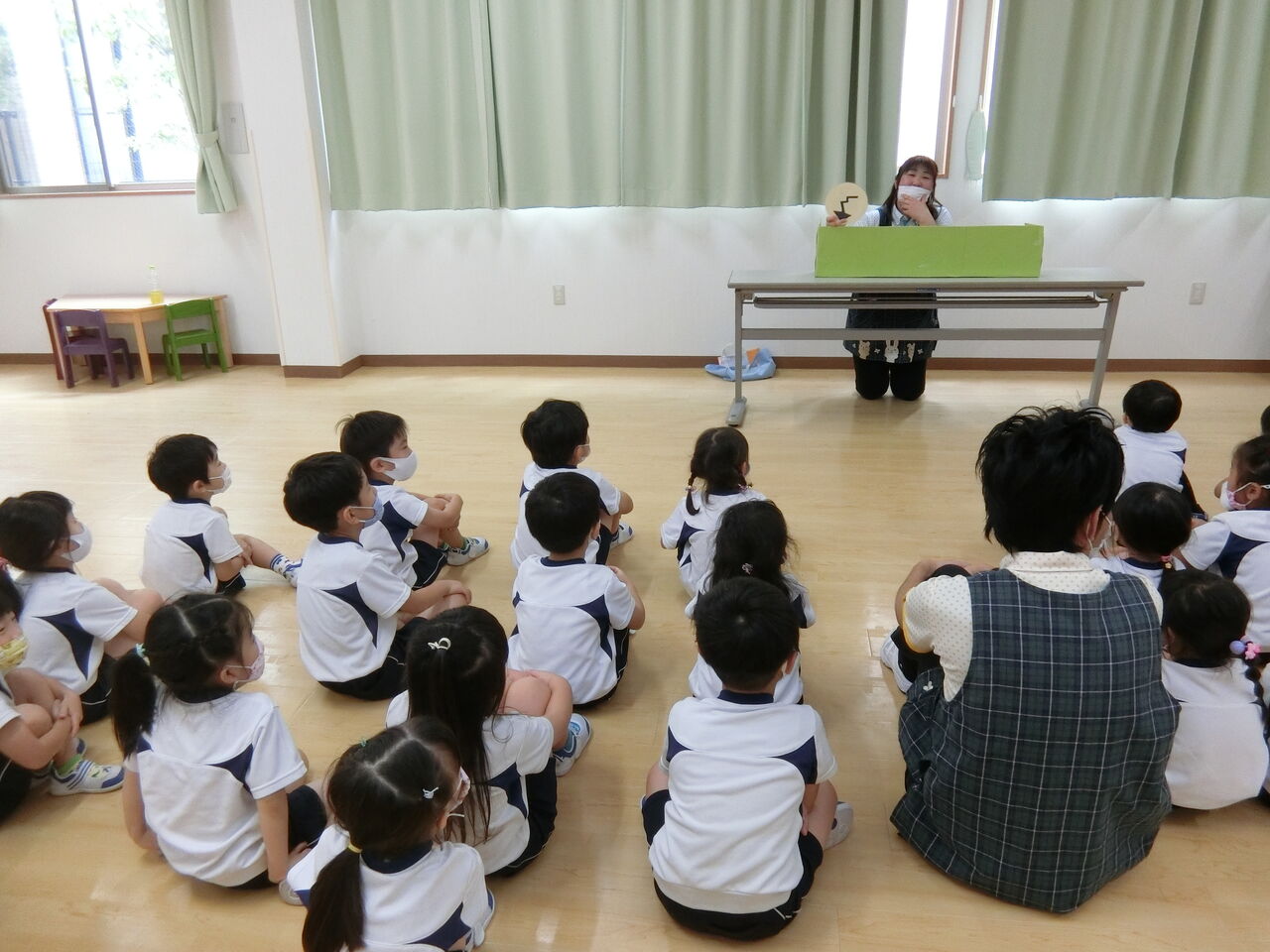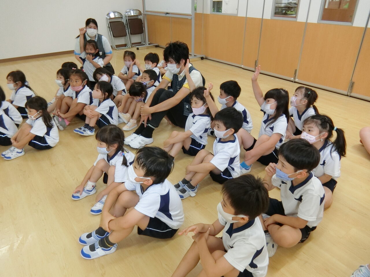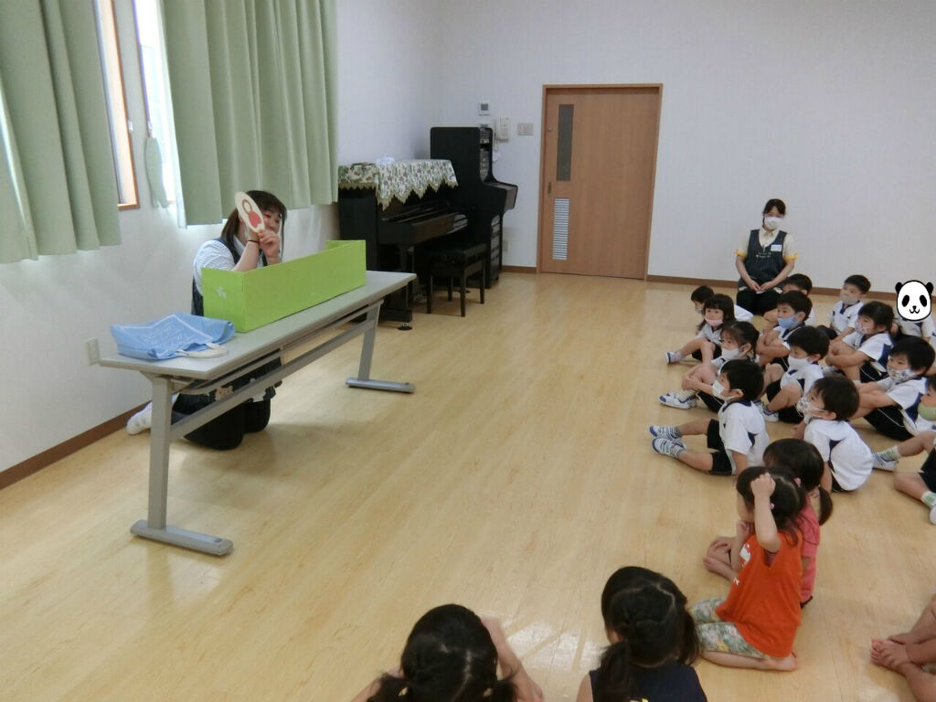 新型コロナウイルス感染症対策のため、メダルのプレゼントは各クラスで行い、誕生会では先生たちの出し物を見ました