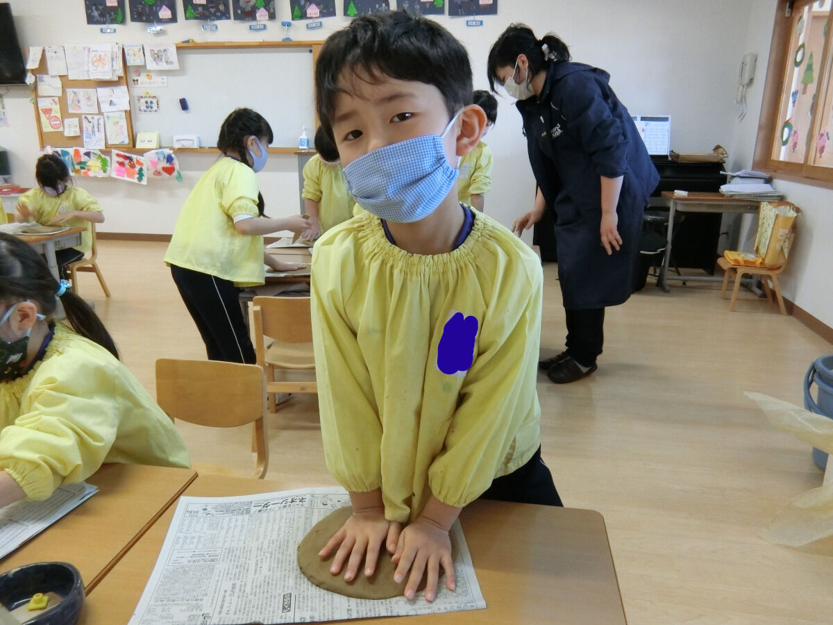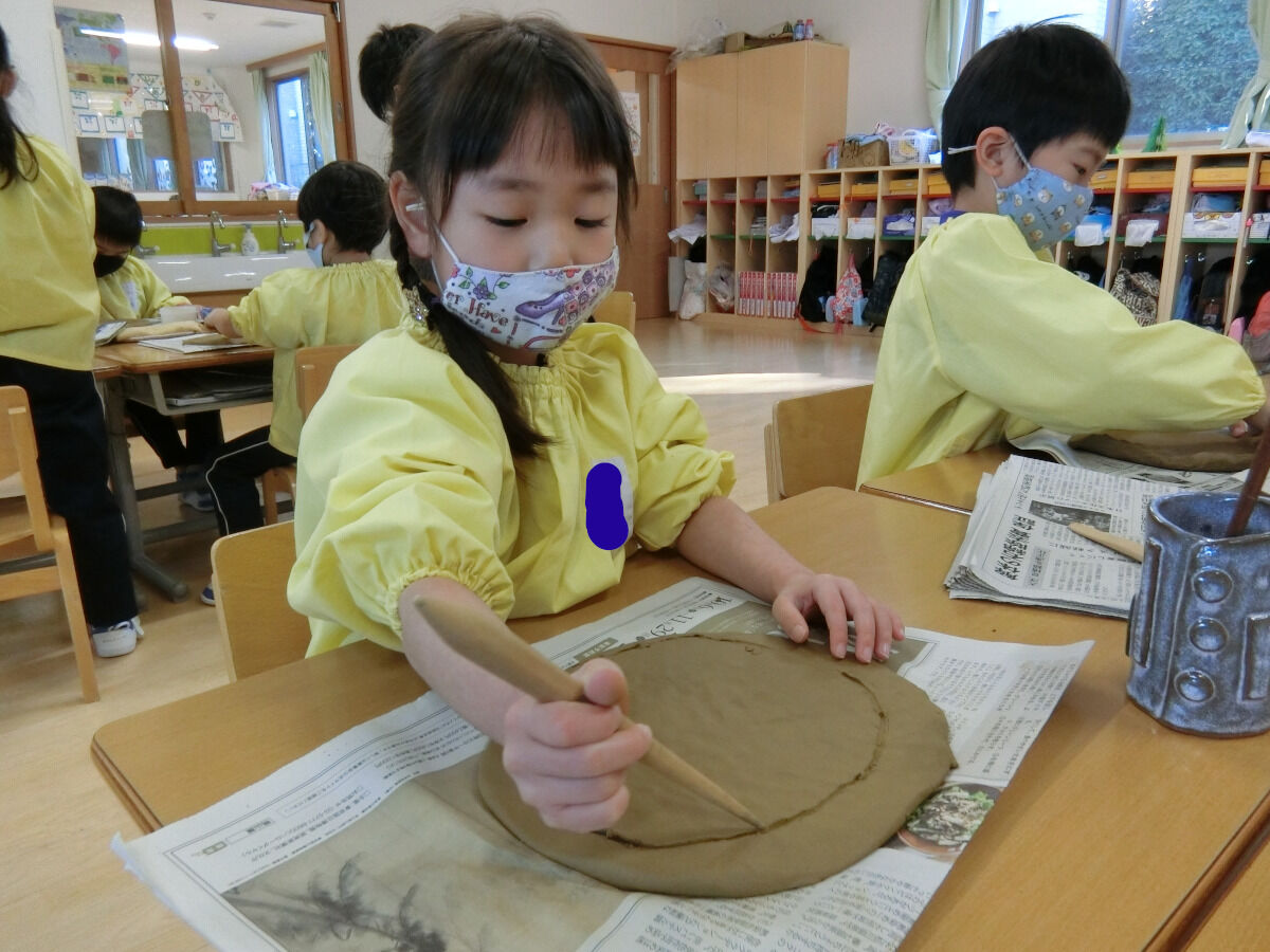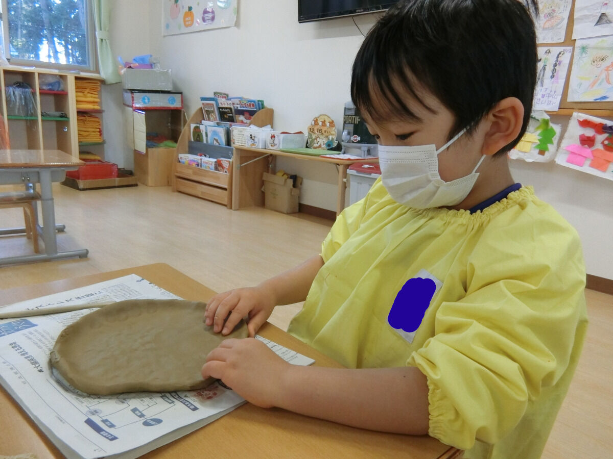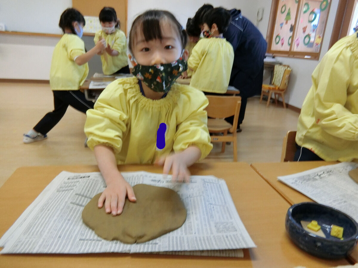 おおかみ組☆陶芸体験♪ 2020年12月19日 今回は先日行った陶芸体験の様子をお伝えしていこうと思います まずは先生のお手本を見てから... みんなも実際に挑戦です!!!粘土を薄く伸ばしていきますいつも使っている粘土とは触り心地も違って柔らかかったみたいです 伸ばした後は、線を引いて好きな形に切ったり… お皿の形に整えていきました 最後に焼き上がりの時の色を自分たちで選びました みんな、焼き上がりがとても楽しみな様子でした素敵な作品ができるといいですね