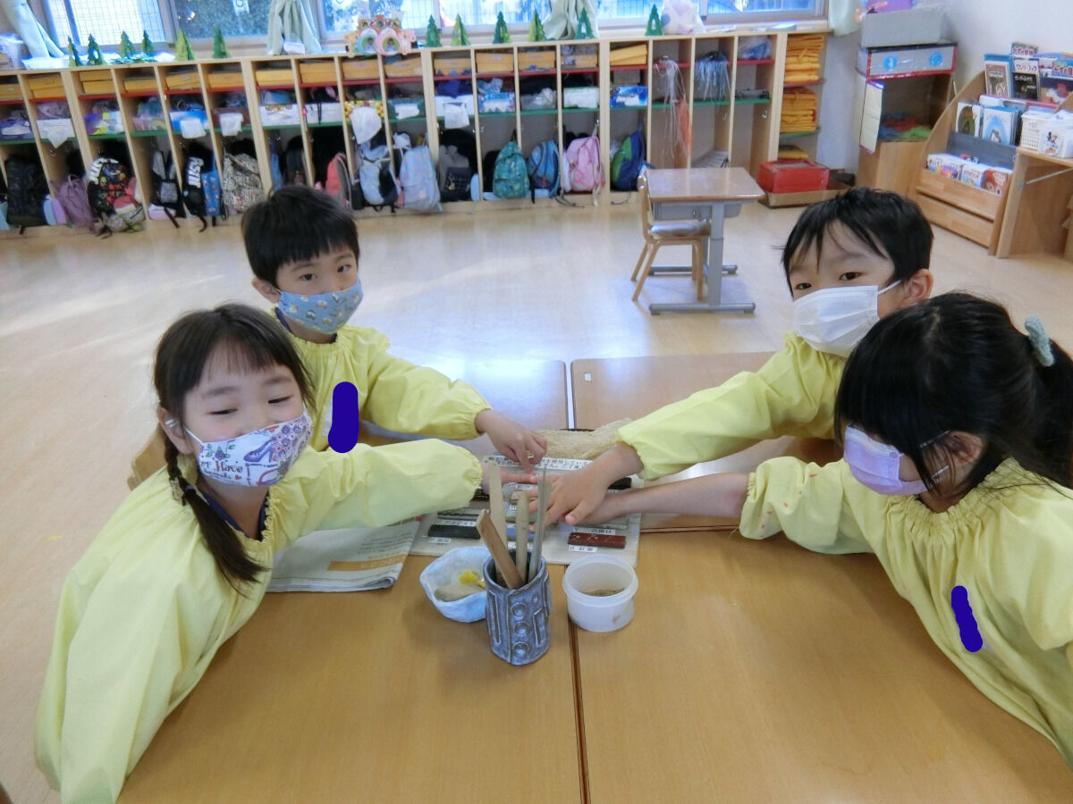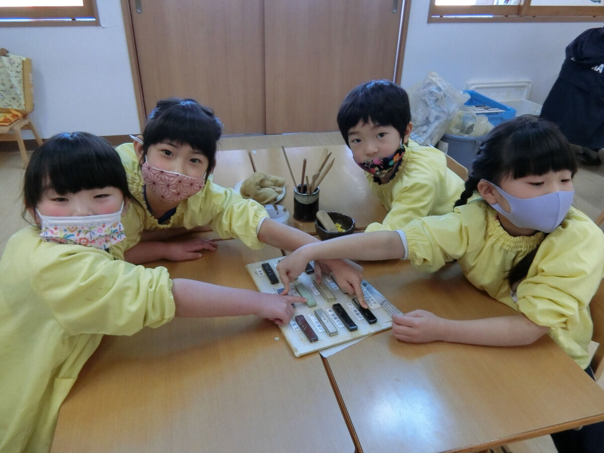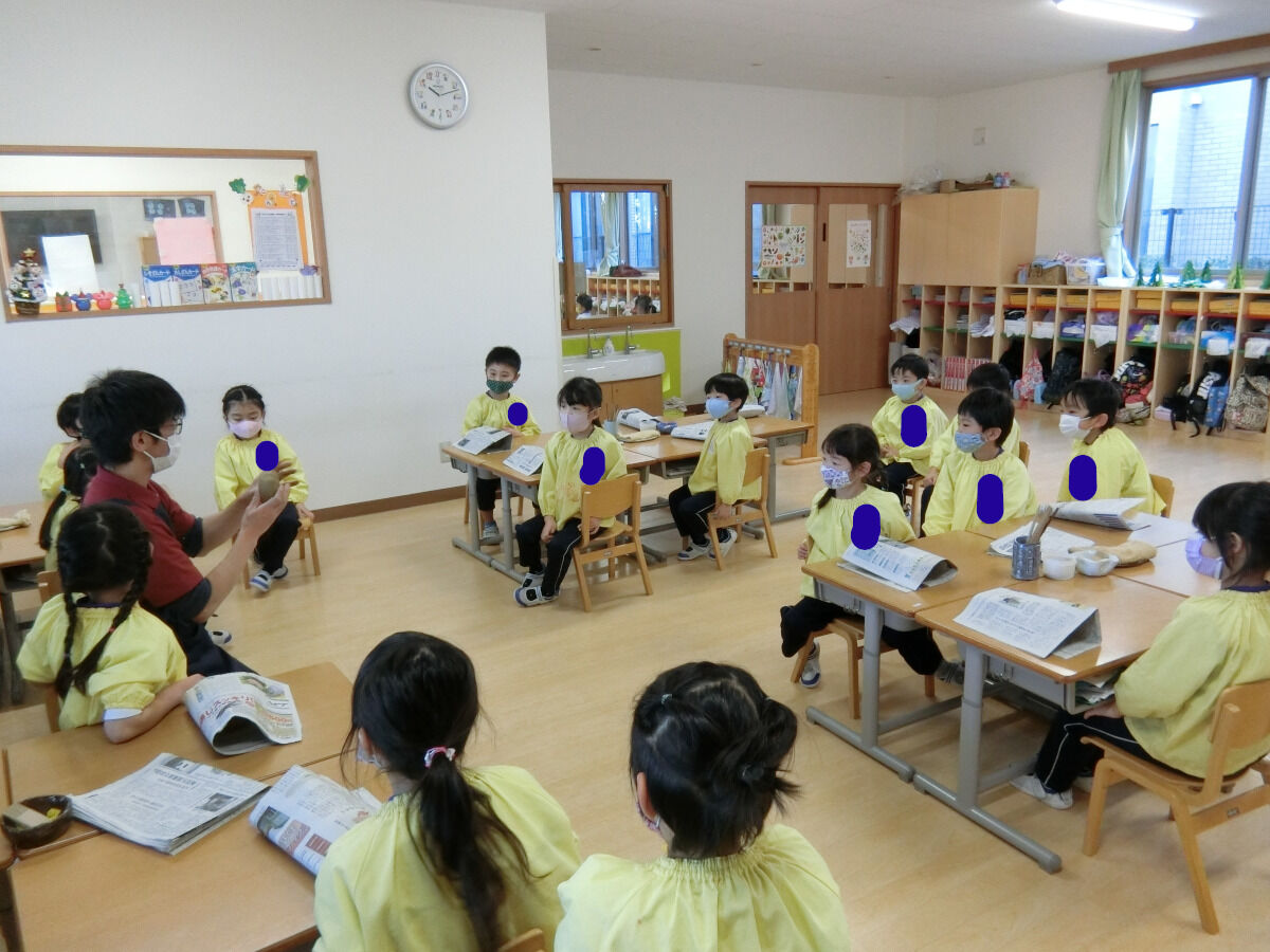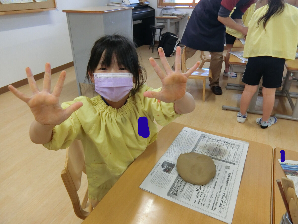 おおかみ組☆陶芸体験♪ 2020年12月19日 今回は先日行った陶芸体験の様子をお伝えしていこうと思います まずは先生のお手本を見てから... みんなも実際に挑戦です!!!粘土を薄く伸ばしていきますいつも使っている粘土とは触り心地も違って柔らかかったみたいです 伸ばした後は、線を引いて好きな形に切ったり… お皿の形に整えていきました 最後に焼き上がりの時の色を自分たちで選びました みんな、焼き上がりがとても楽しみな様子でした素敵な作品ができるといいですね