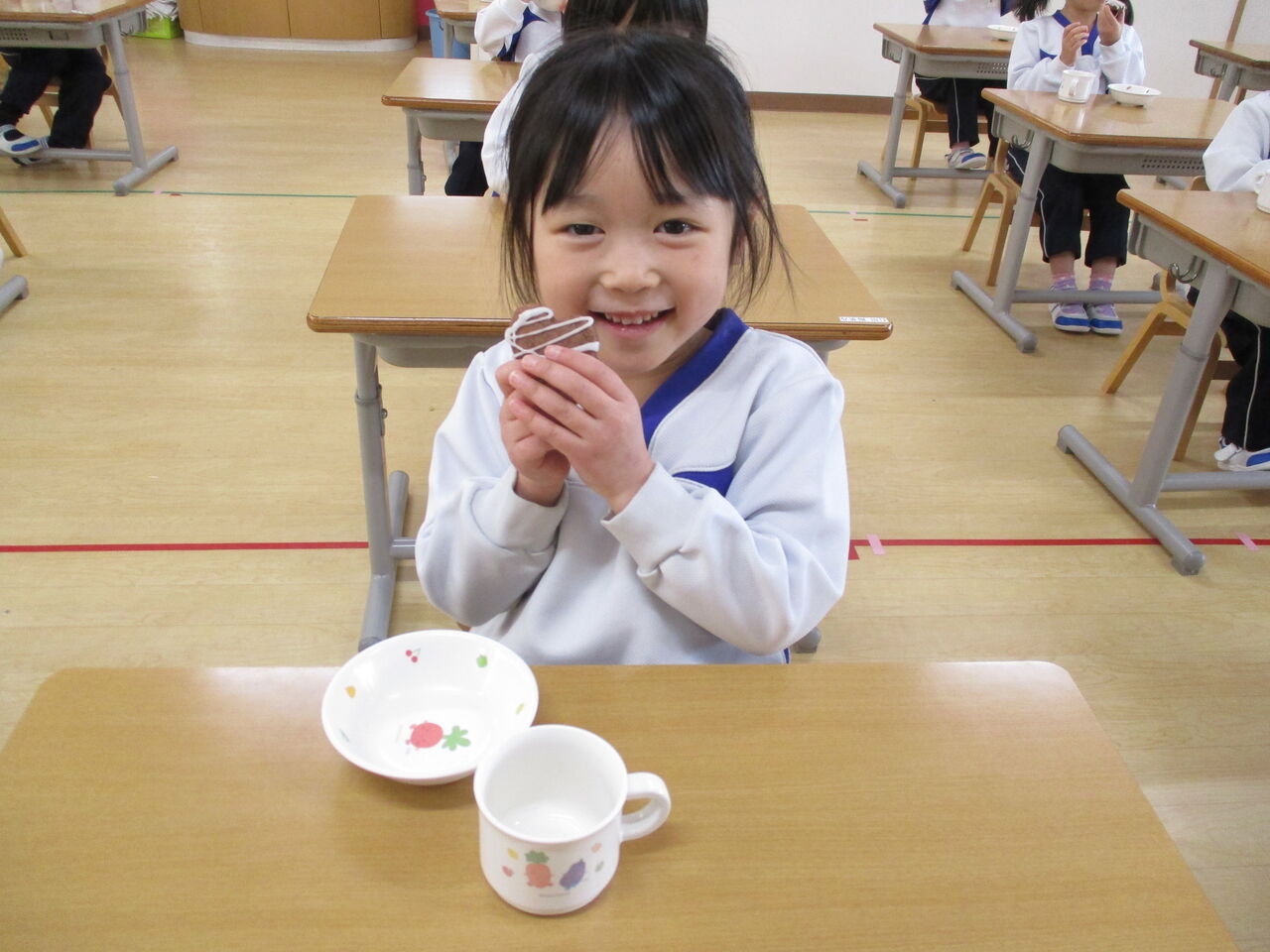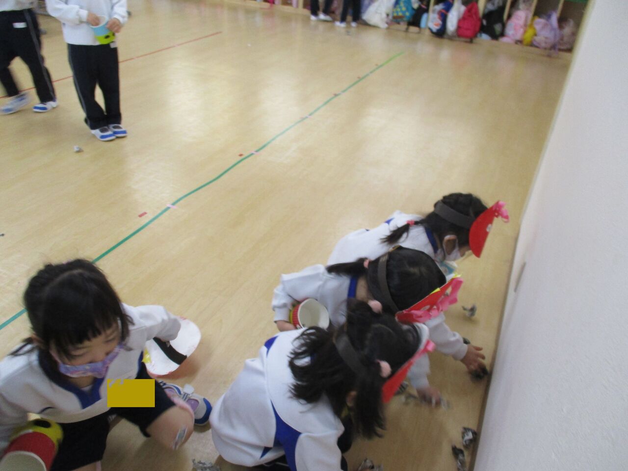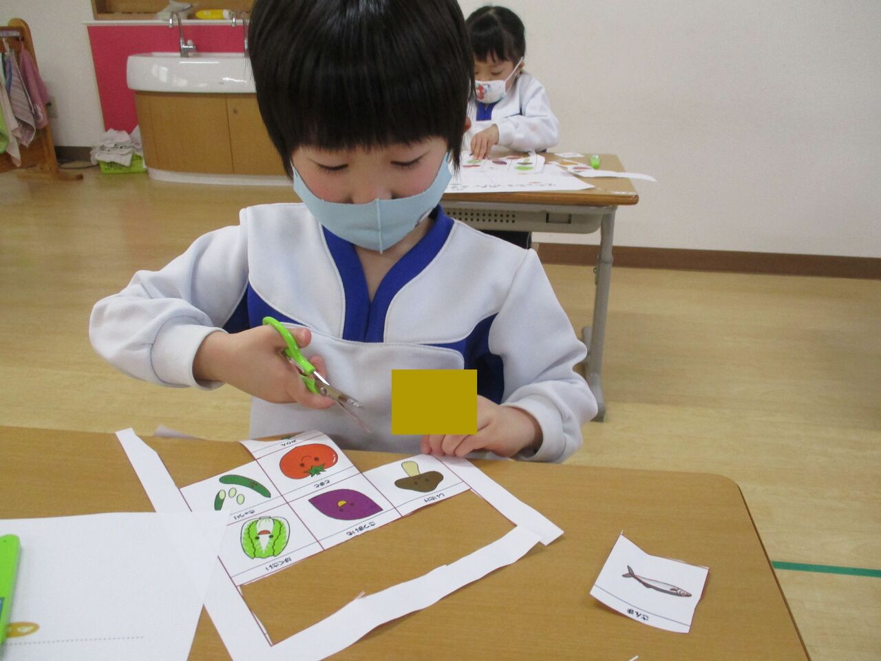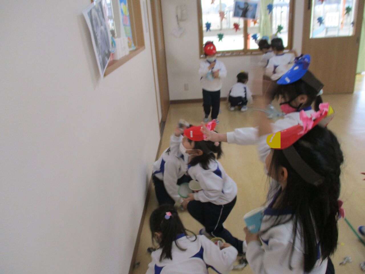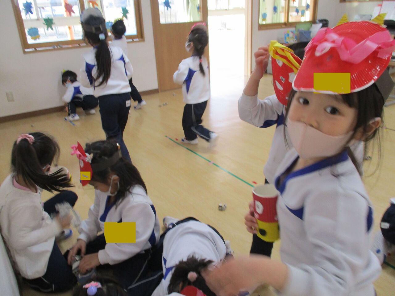 きつね組♡2月の様子 2021年03月05日 こんにちは今回は2月のきつね組の様子をお伝えします まず節分の豆まきの様子から今年は鬼滅の刃の鬼に向かって投げました 次におやつの様子この日はバレンタインデーメニューでハートのクッキーが出ました♡の形に大喜びでした美味しかったね 次は食育に付いてお伝えします春・夏・秋・冬の旬の食べ物について皆で考えましたクイズ形式で季節の食べ物を分けました楽しく出来ました最後にみんなでポーズ次回もお楽しみに~~~