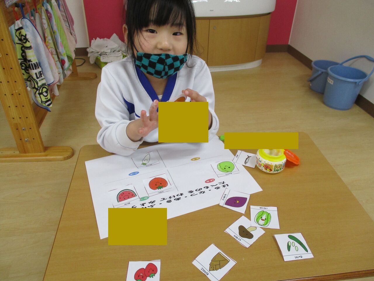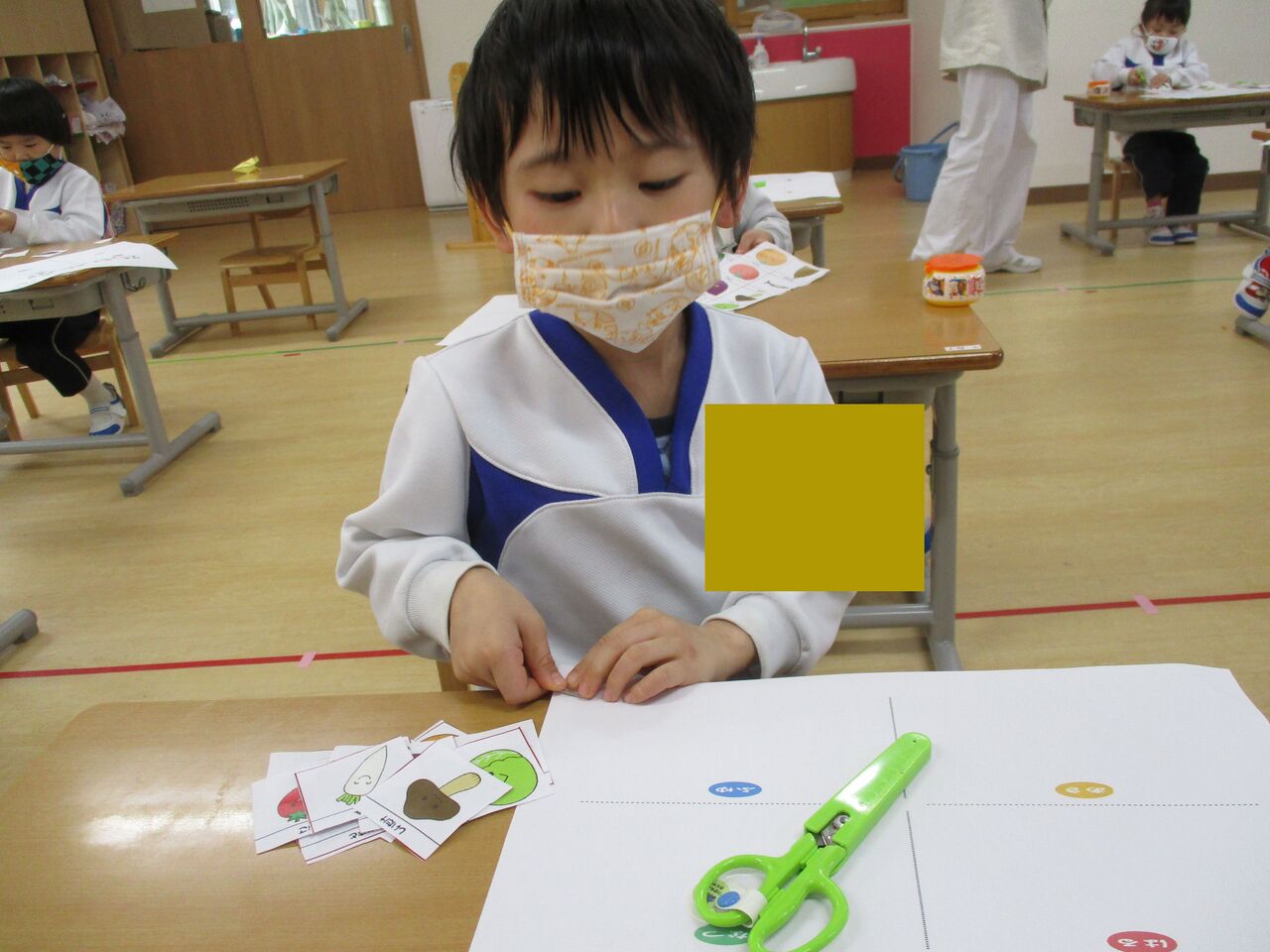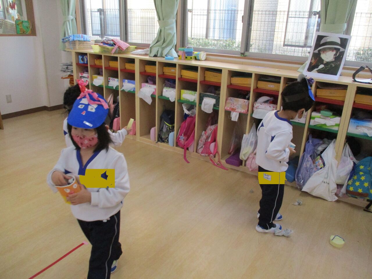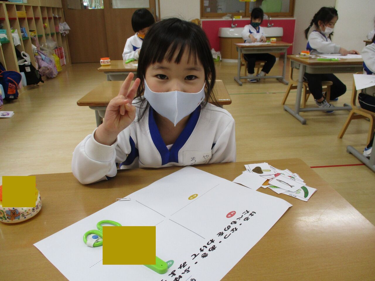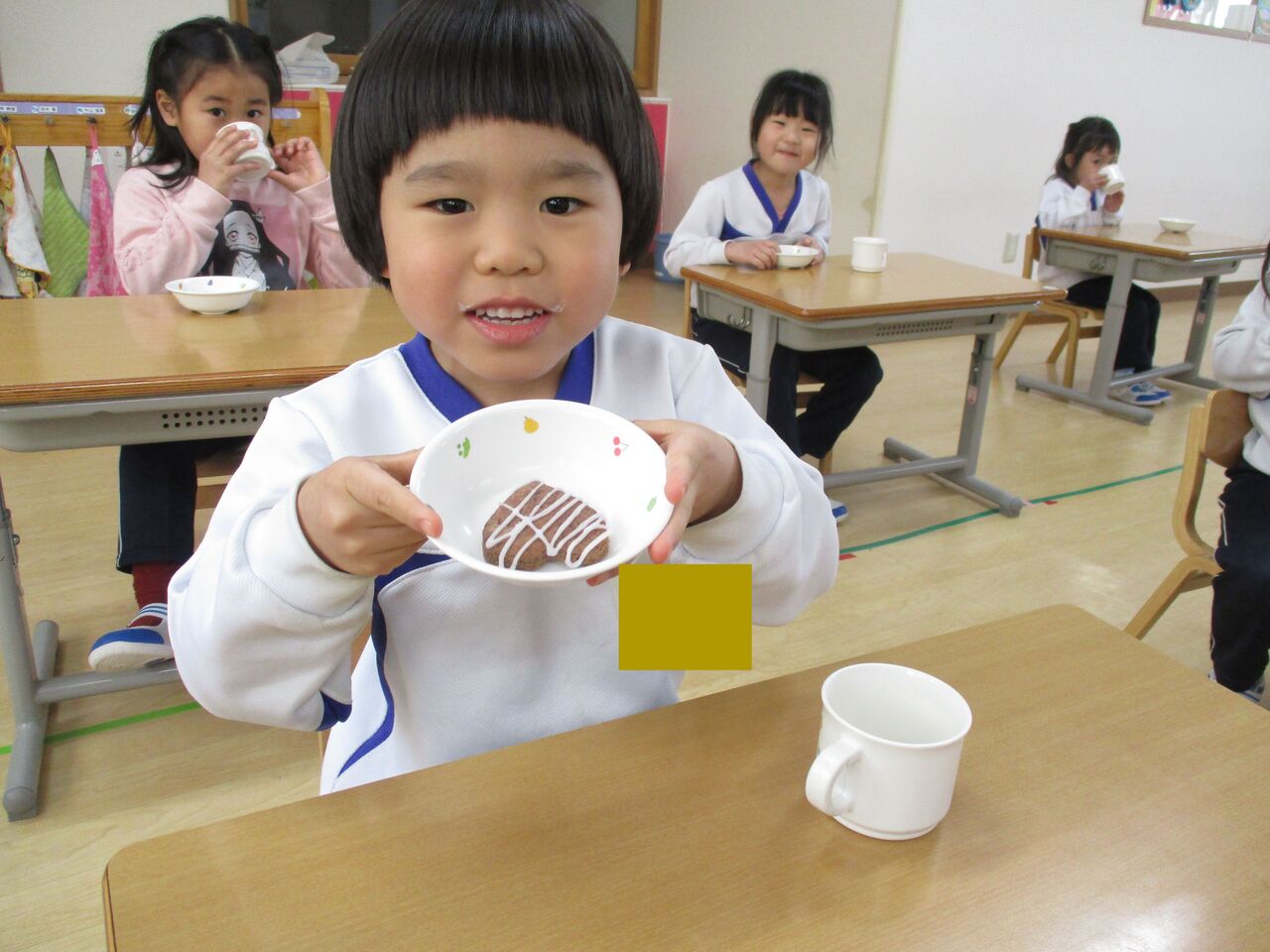 きつね組♡2月の様子 2021年03月05日 こんにちは今回は2月のきつね組の様子をお伝えします まず節分の豆まきの様子から今年は鬼滅の刃の鬼に向かって投げました 次におやつの様子この日はバレンタインデーメニューでハートのクッキーが出ました♡の形に大喜びでした美味しかったね 次は食育に付いてお伝えします春・夏・秋・冬の旬の食べ物について皆で考えましたクイズ形式で季節の食べ物を分けました楽しく出来ました最後にみんなでポーズ次回もお楽しみに~~~