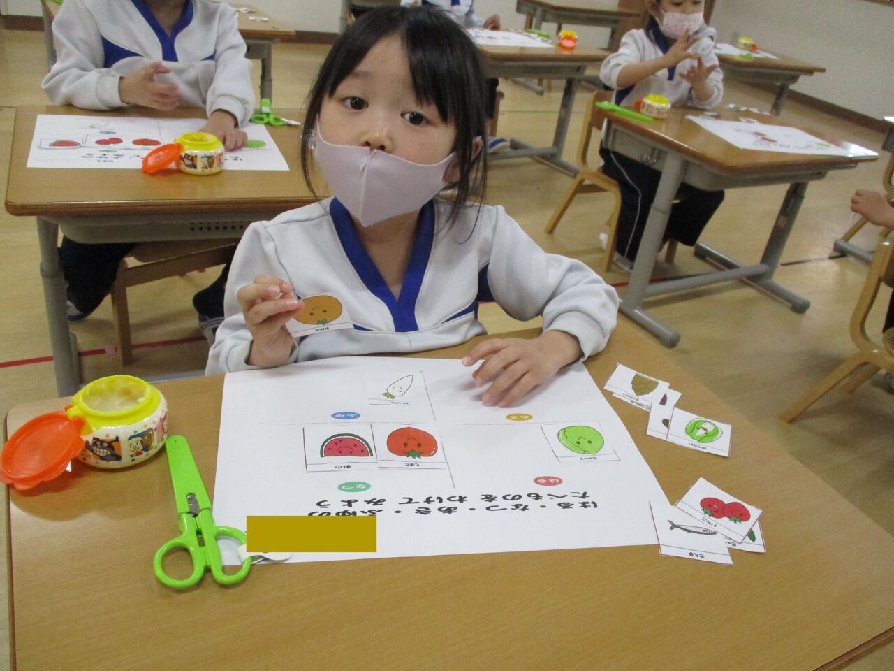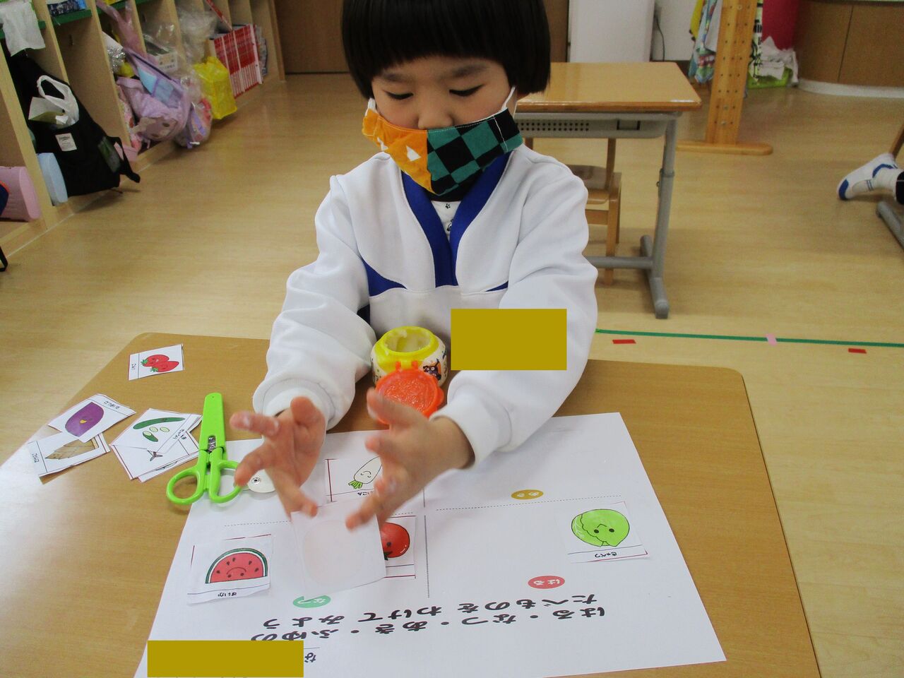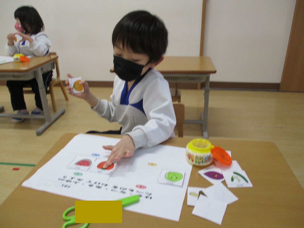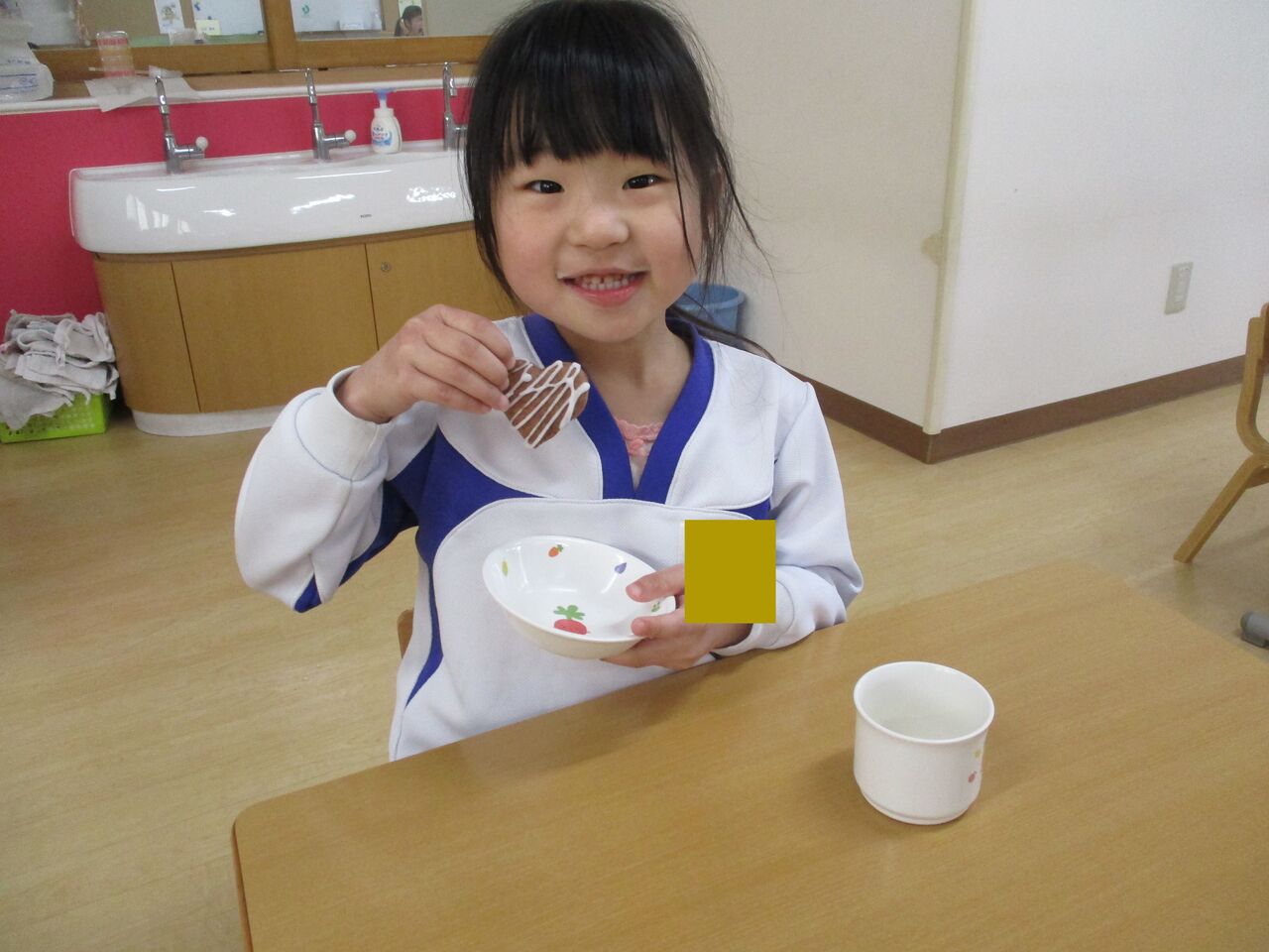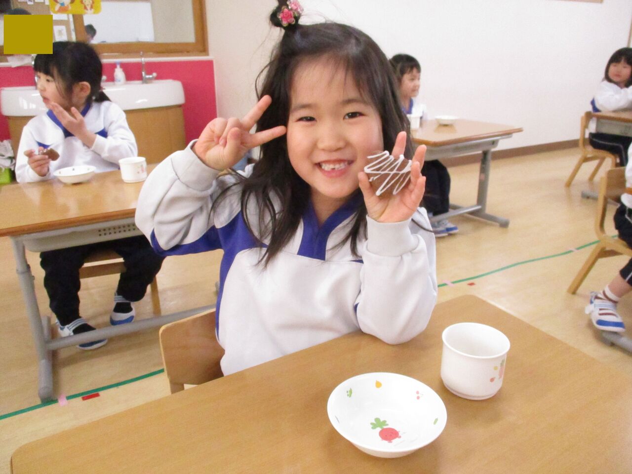 きつね組♡2月の様子 2021年03月05日 こんにちは今回は2月のきつね組の様子をお伝えします まず節分の豆まきの様子から今年は鬼滅の刃の鬼に向かって投げました 次におやつの様子この日はバレンタインデーメニューでハートのクッキーが出ました♡の形に大喜びでした美味しかったね 次は食育に付いてお伝えします春・夏・秋・冬の旬の食べ物について皆で考えましたクイズ形式で季節の食べ物を分けました楽しく出来ました最後にみんなでポーズ次回もお楽しみに~~~