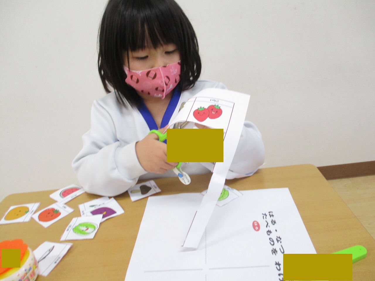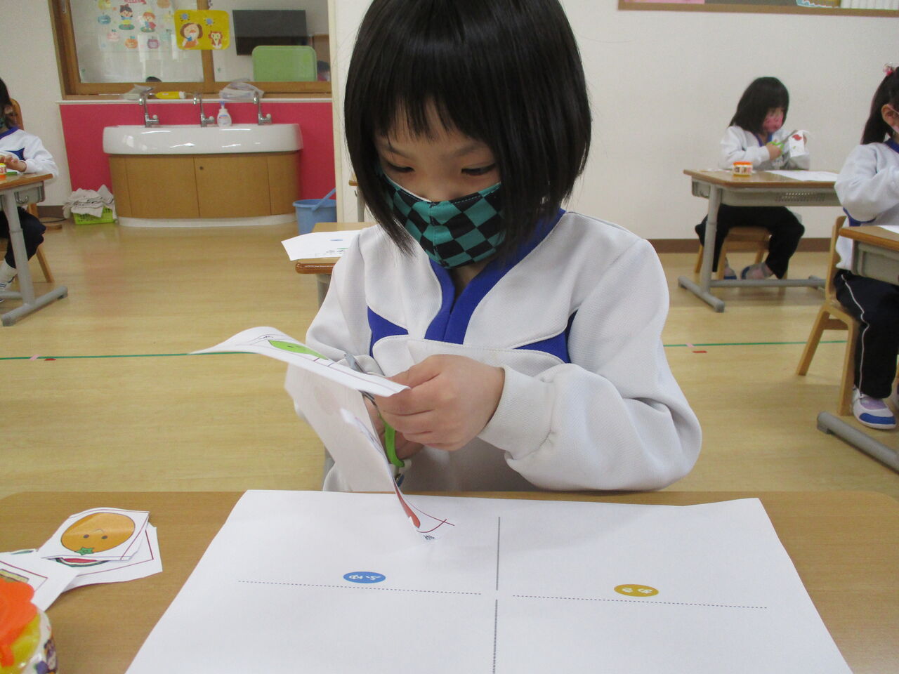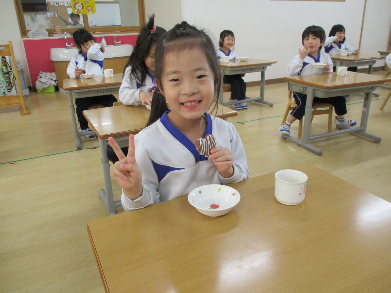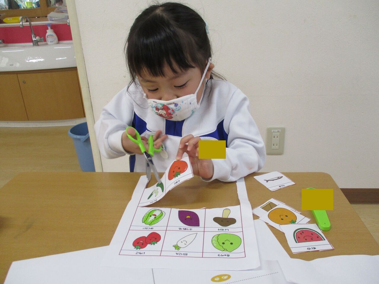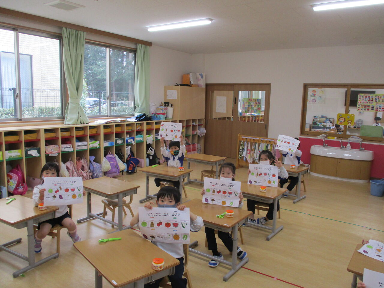 きつね組♡2月の様子 2021年03月05日 こんにちは今回は2月のきつね組の様子をお伝えします まず節分の豆まきの様子から今年は鬼滅の刃の鬼に向かって投げました 次におやつの様子この日はバレンタインデーメニューでハートのクッキーが出ました♡の形に大喜びでした美味しかったね 次は食育に付いてお伝えします春・夏・秋・冬の旬の食べ物について皆で考えましたクイズ形式で季節の食べ物を分けました楽しく出来ました最後にみんなでポーズ次回もお楽しみに~~~