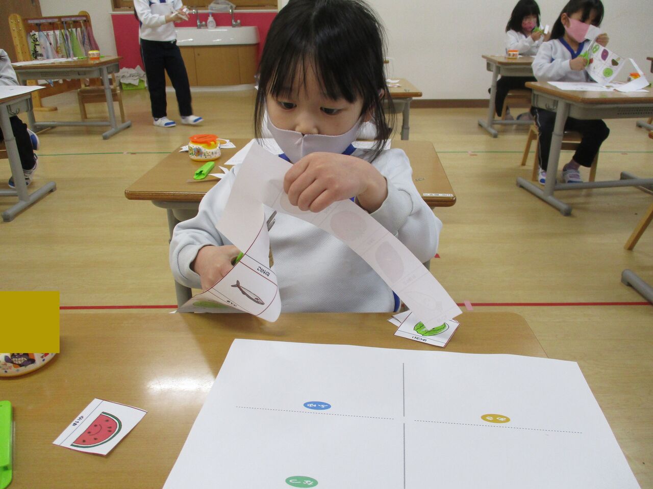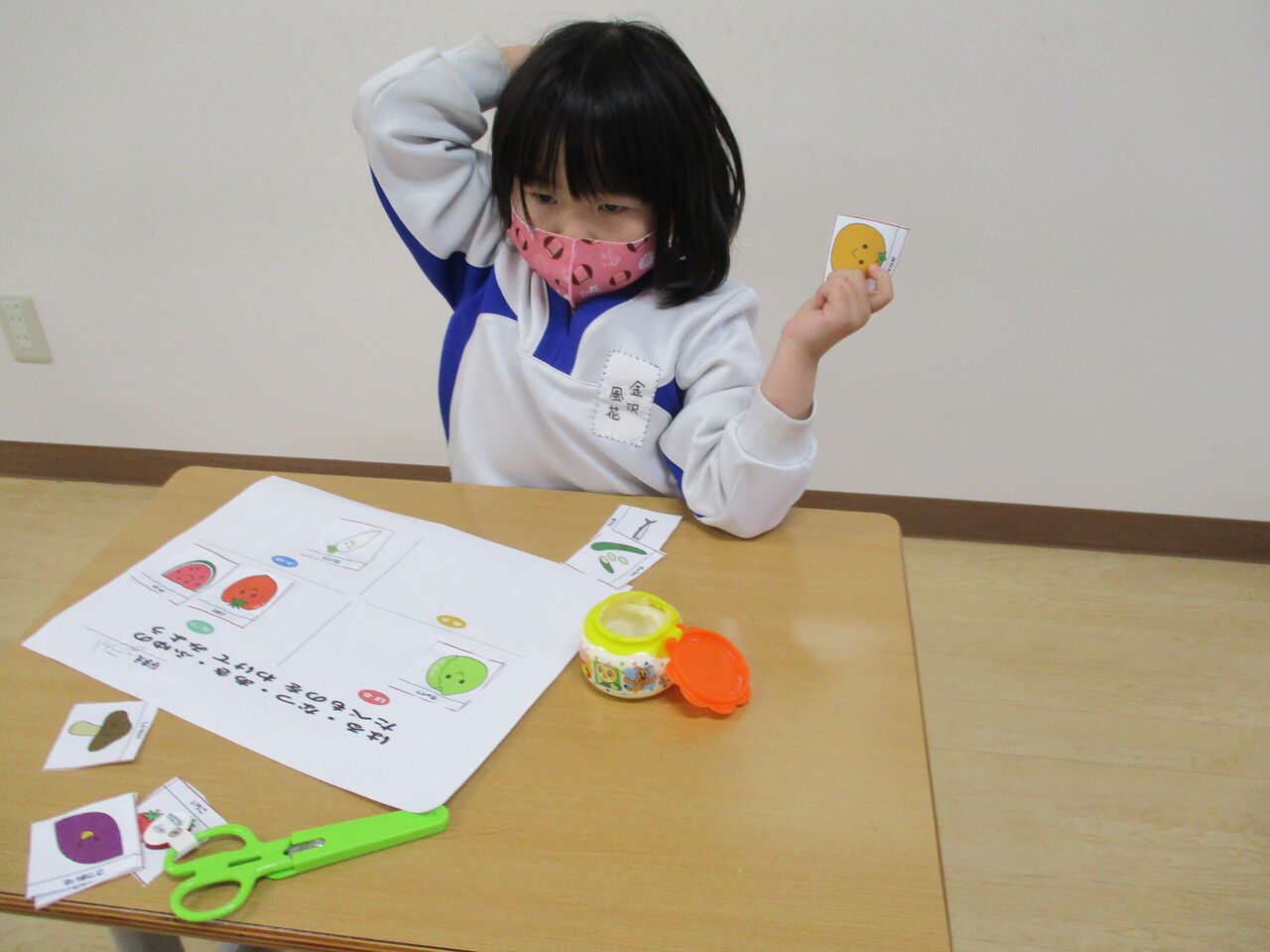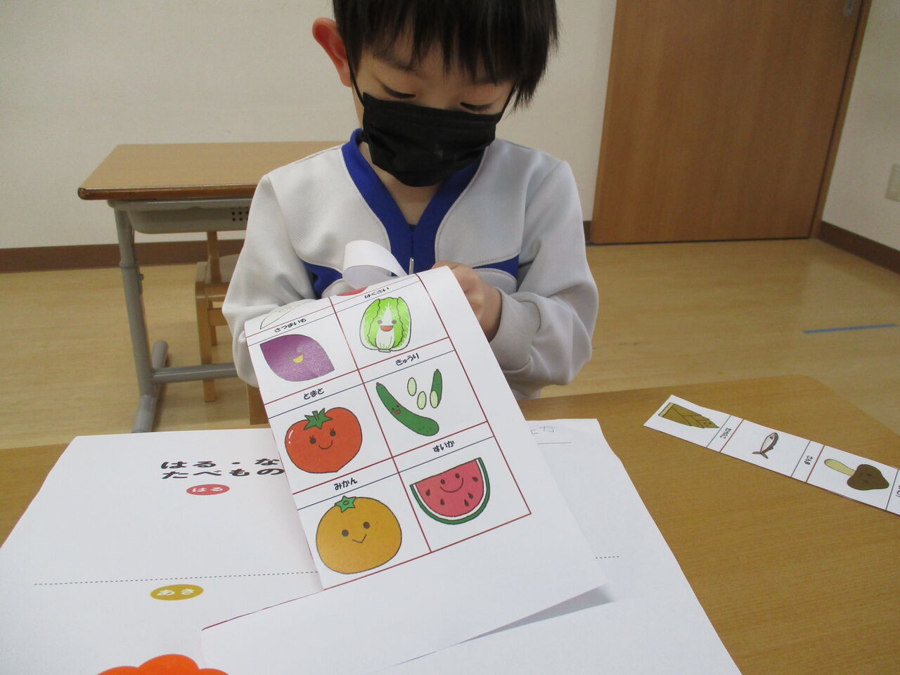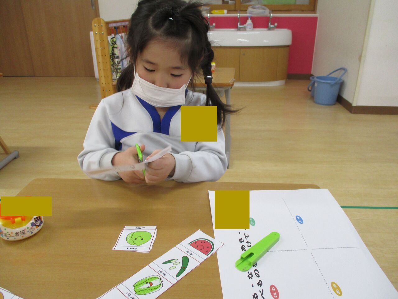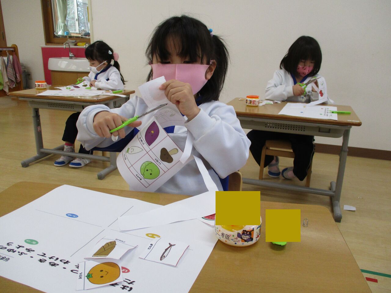 きつね組♡2月の様子 2021年03月05日 こんにちは今回は2月のきつね組の様子をお伝えします まず節分の豆まきの様子から今年は鬼滅の刃の鬼に向かって投げました 次におやつの様子この日はバレンタインデーメニューでハートのクッキーが出ました♡の形に大喜びでした美味しかったね 次は食育に付いてお伝えします春・夏・秋・冬の旬の食べ物について皆で考えましたクイズ形式で季節の食べ物を分けました楽しく出来ました最後にみんなでポーズ次回もお楽しみに~~~