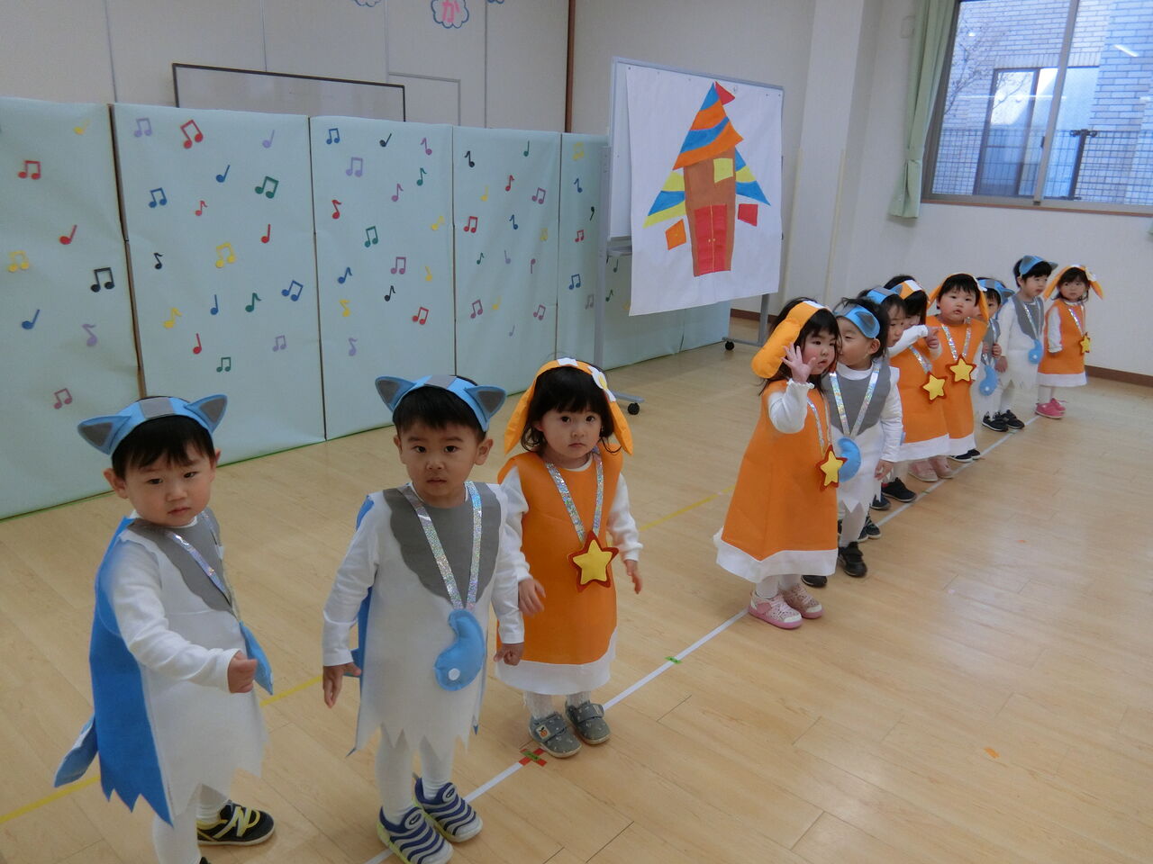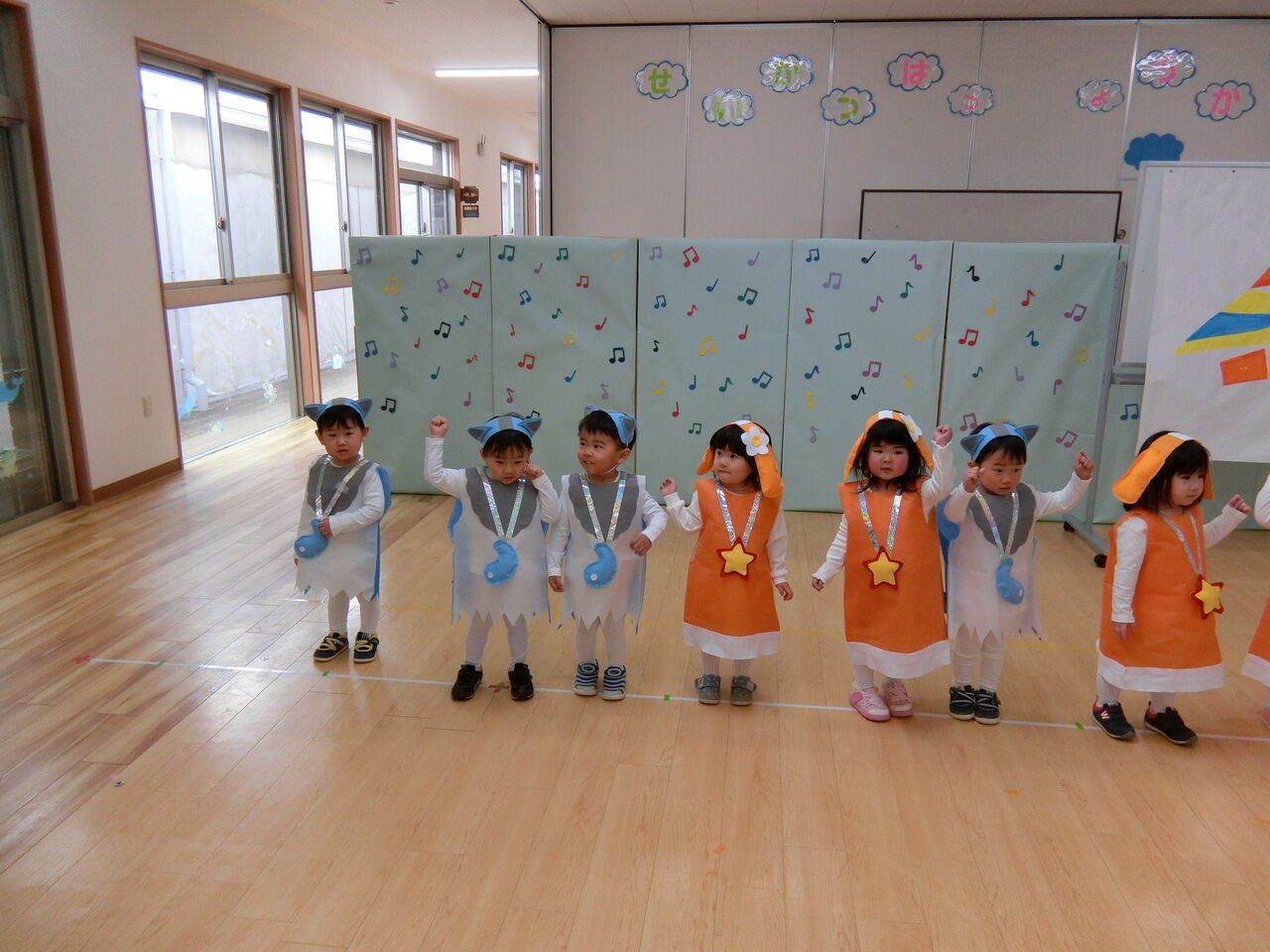 りす組☆生活発表会の練習 2022年03月02日 りす組は今度の生活発表会に向けて、練習を頑張っていますみんな衣装に着替えてやる気満々です 練習を繰り返し行うことで、広いホールでも緊張せずに踊ることが出来るようになってきました 本番でも練習のように上手に踊ることが出来たらいいなと思います