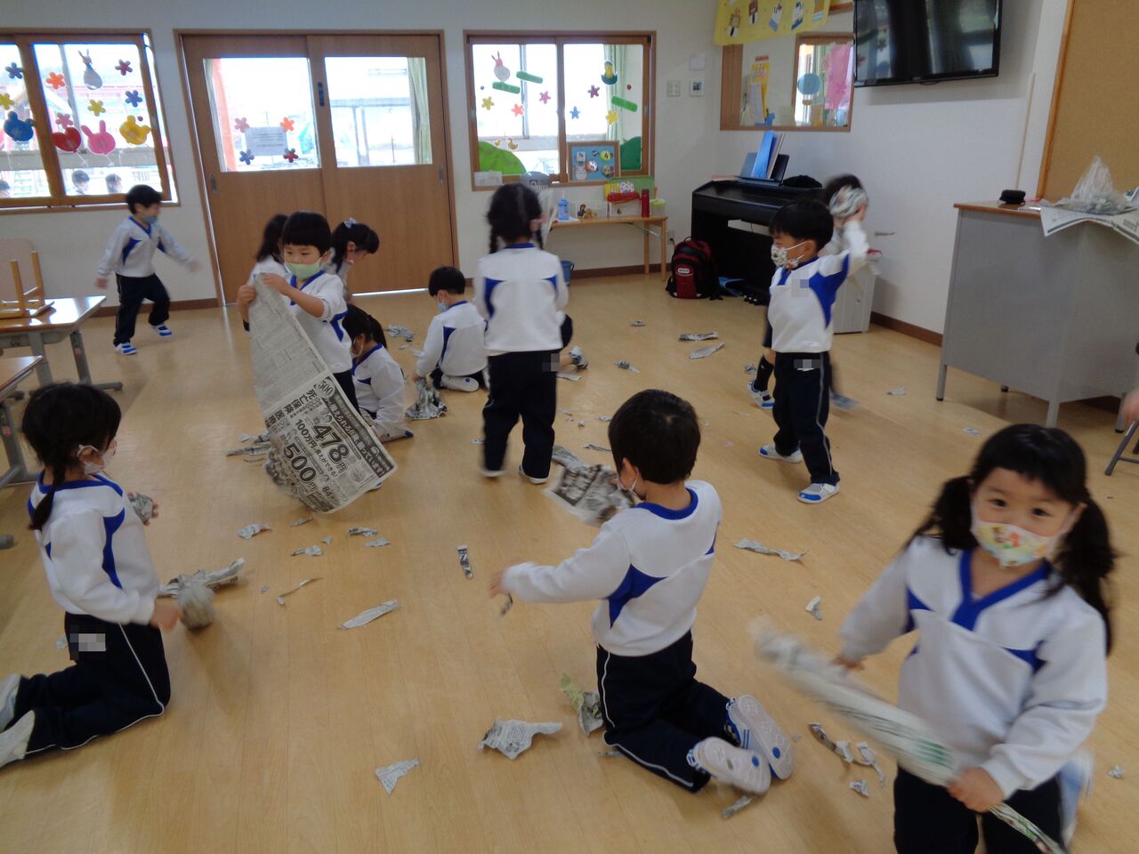 ビリビリしたり、丸めてみたり。みんなで遊ぶと楽しいね