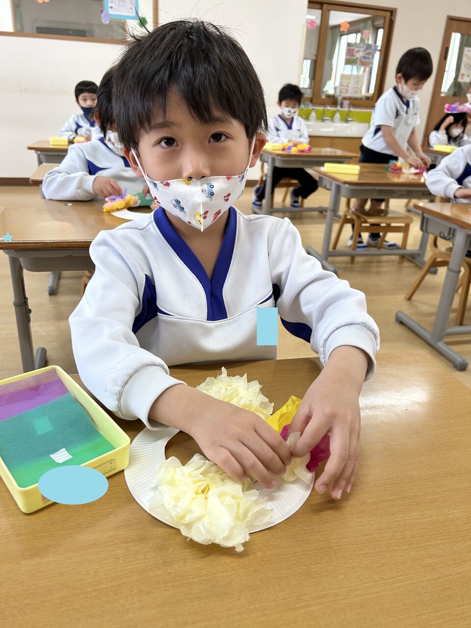 まずは、製作の様子。窓飾りにお花